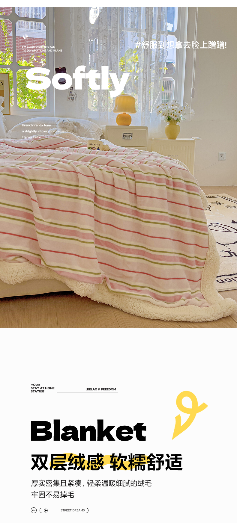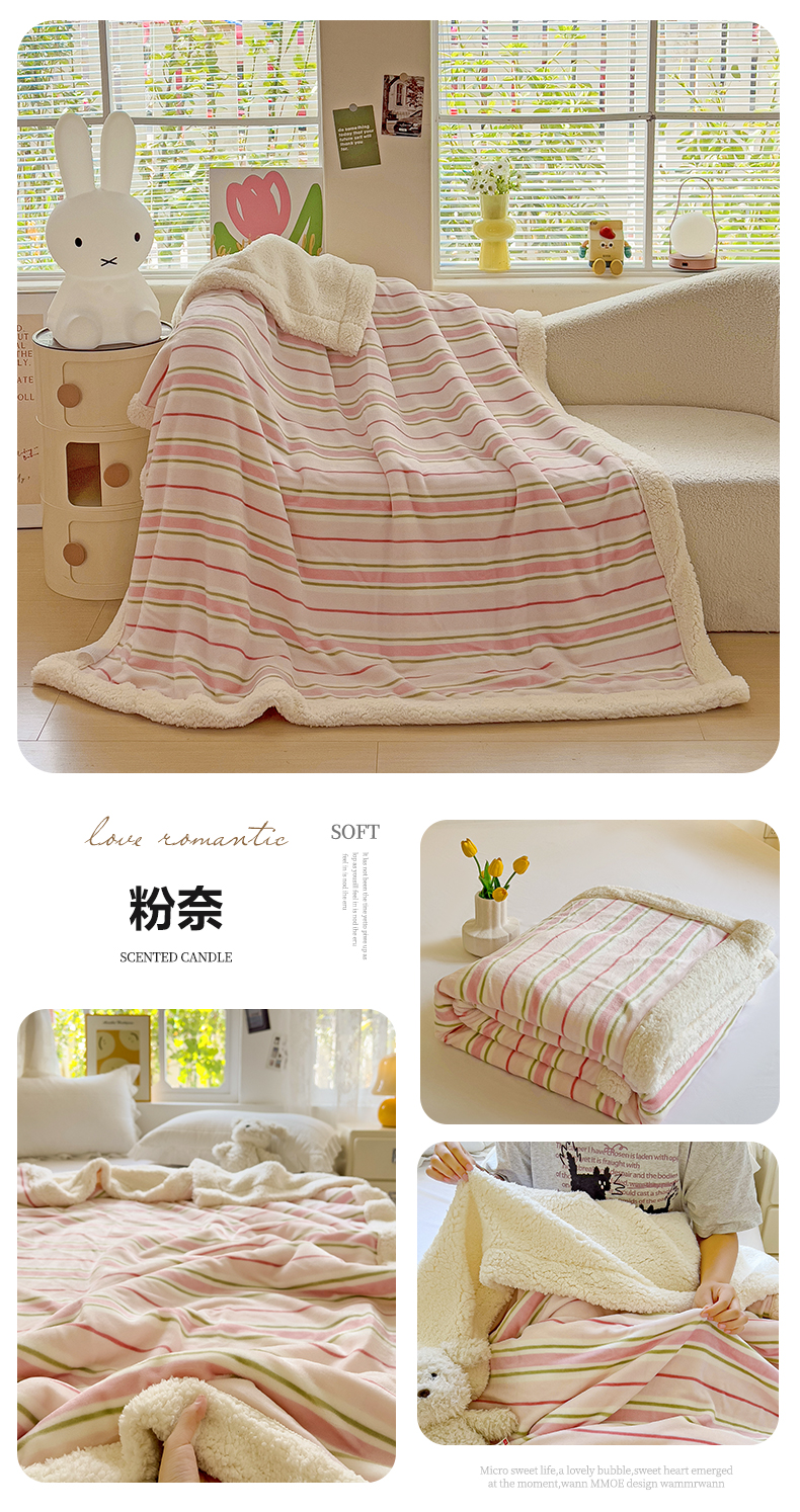 艾咪-Amy ntmy 2024新款ins条纹牛奶绒双层毯毛毯休闲毯 粉奈