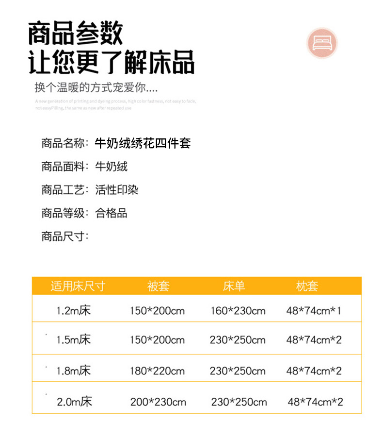 (总)梦莱斯 2025全消光加厚牛奶绒四件套 - 山茶花系列,山茶花-橙,山茶花-粉,山茶花-绿,山茶花-奶白,山茶花-浅灰,山茶花-浅紫,山茶花-天蓝