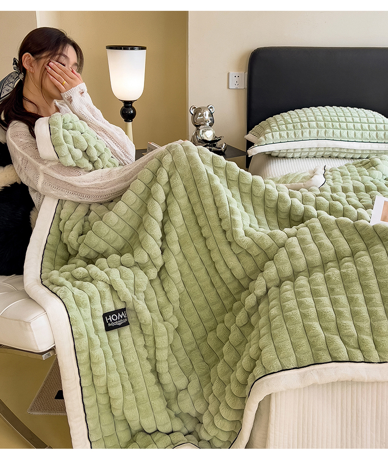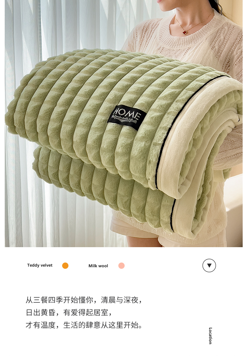 慕木家纺 2025新款A类金貂绒剪格多功能毛毯盖毯 金貂绒-清新绿