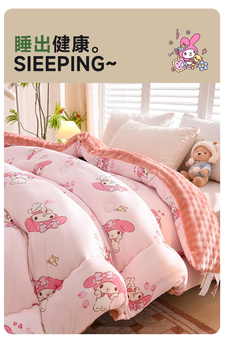 (总)艾兜坊 2025新款三丽鸥水洗棉3D豆豆被 被子被芯,草莓美乐蒂,木马美乐蒂,幻影库洛米,樱桃库洛米,爱心库洛米,木马玉桂狗