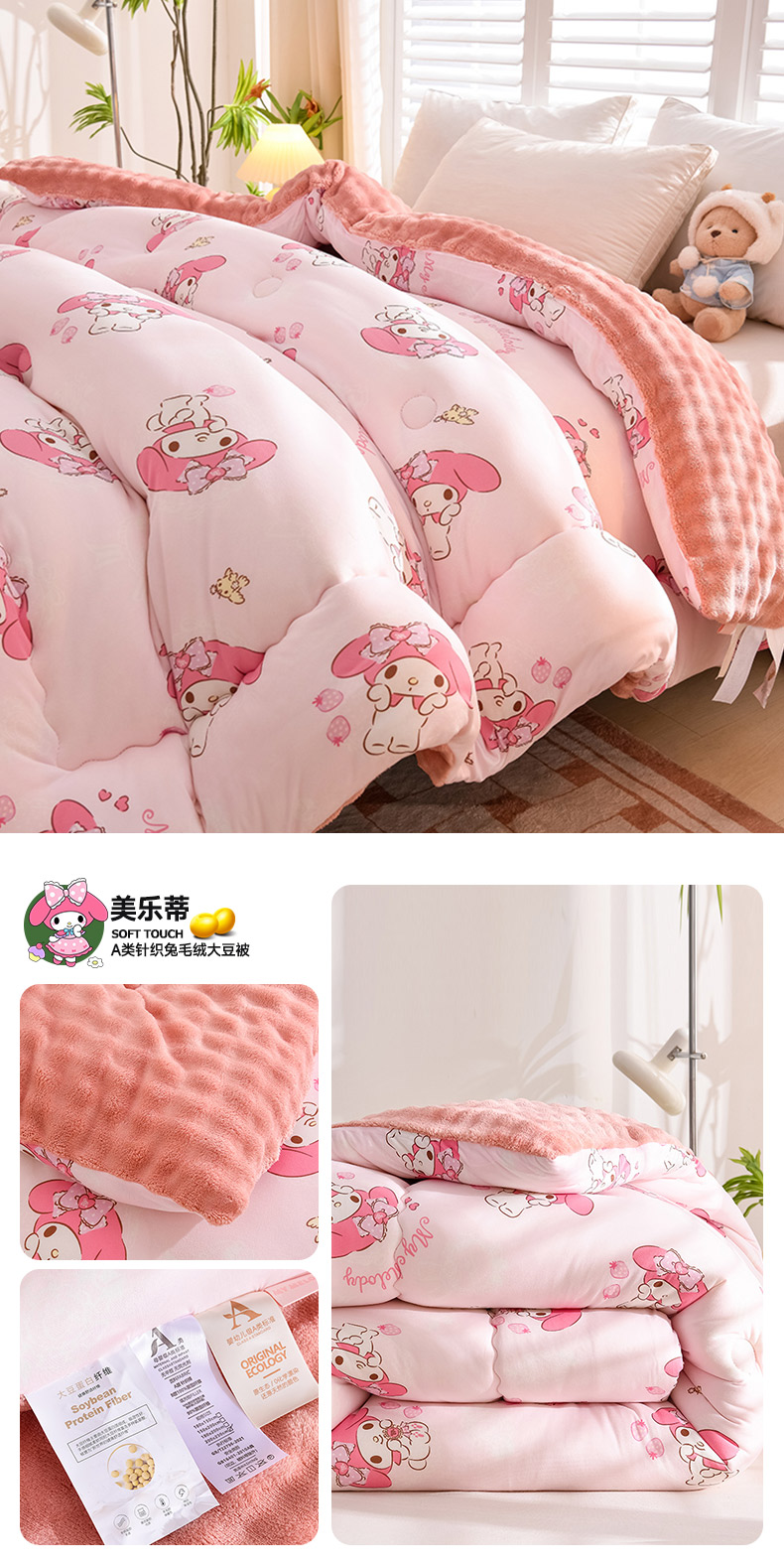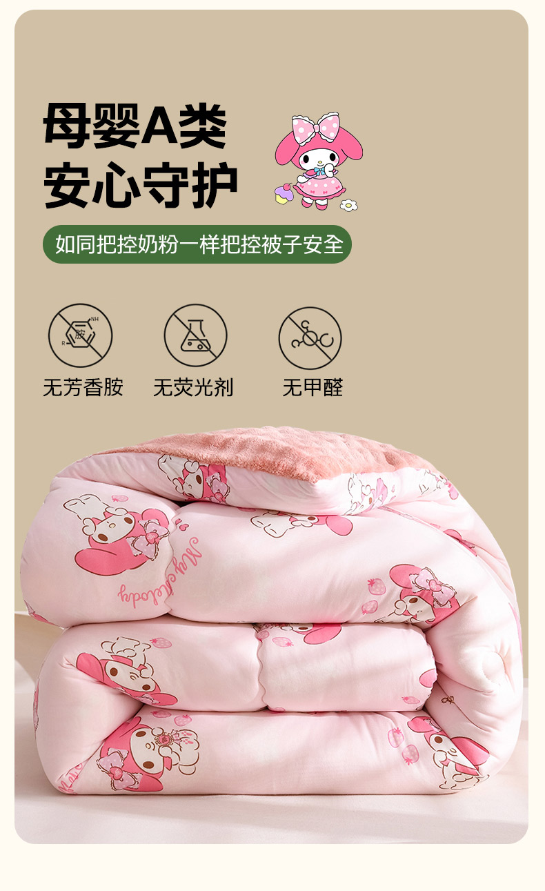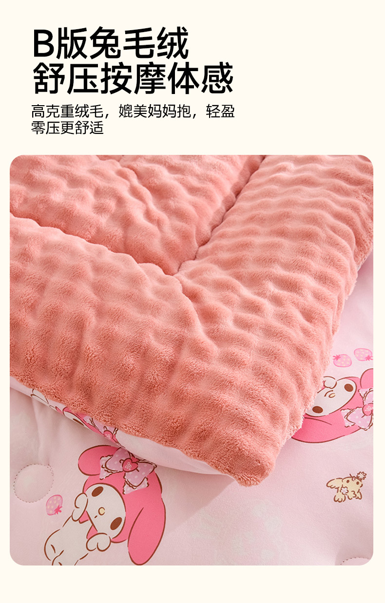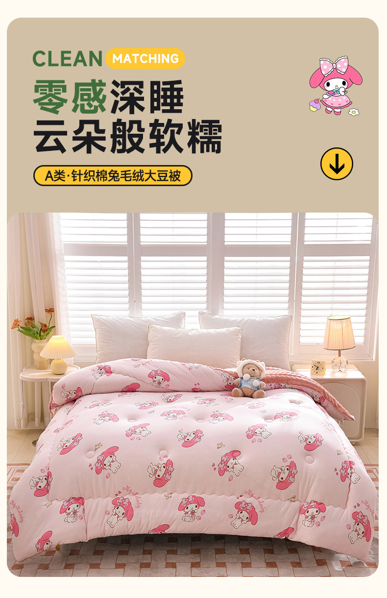 • 91家纺网 家纺一手货源 找家纺 (总)艾兜坊 2025新款三丽鸥水洗棉3D豆豆被 被子被芯,草莓美乐蒂,木马美乐蒂,幻影库洛米,樱桃库洛米,爱心库洛米,木马玉桂狗