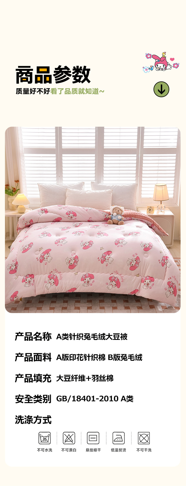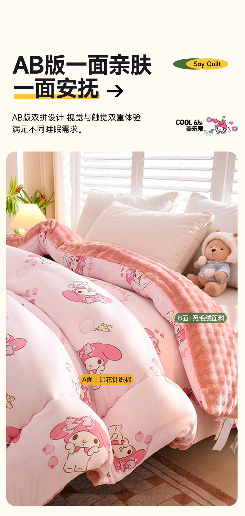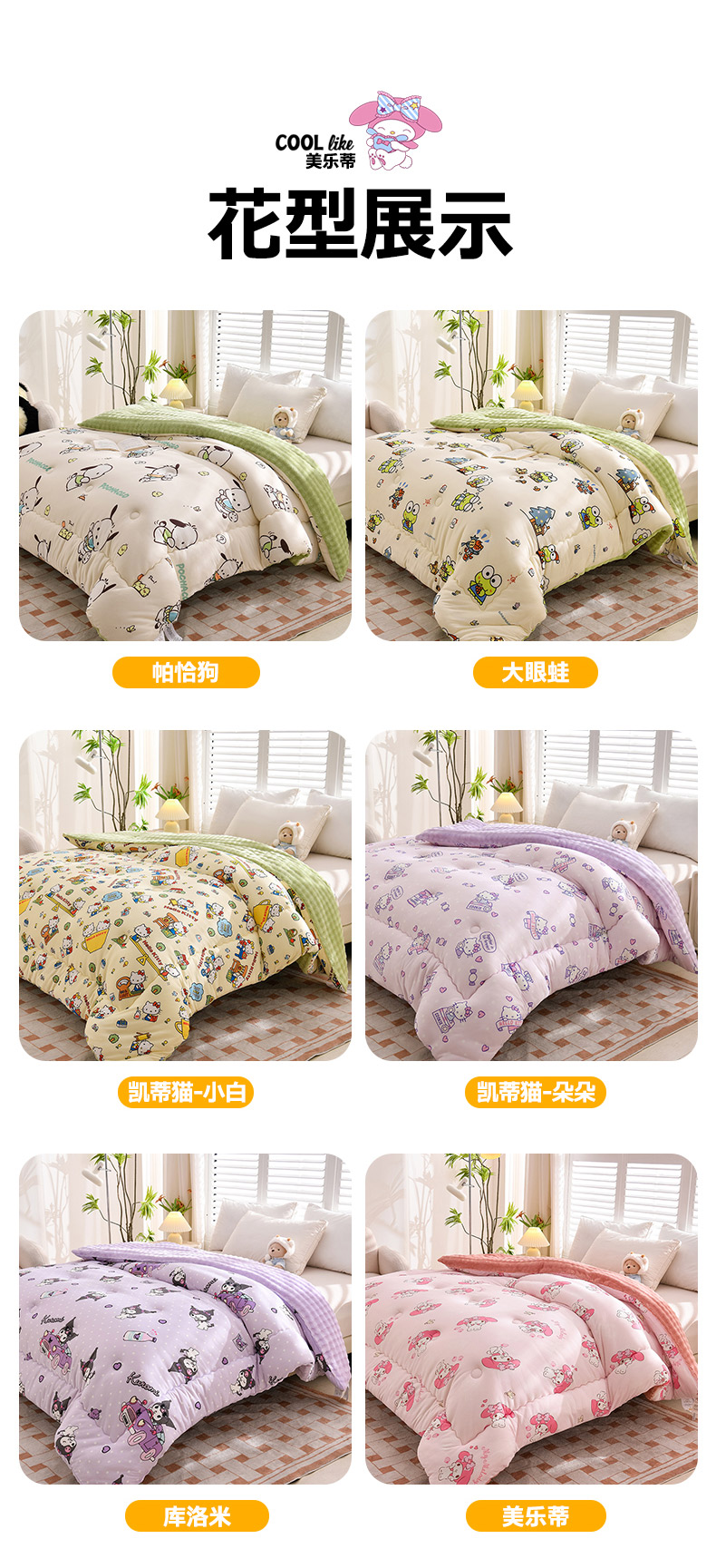 • 91家纺网 家纺一手货源 找家纺 (总)艾兜坊 2025新款三丽鸥水洗棉3D豆豆被 被子被芯,草莓美乐蒂,木马美乐蒂,幻影库洛米,樱桃库洛米,爱心库洛米,木马玉桂狗