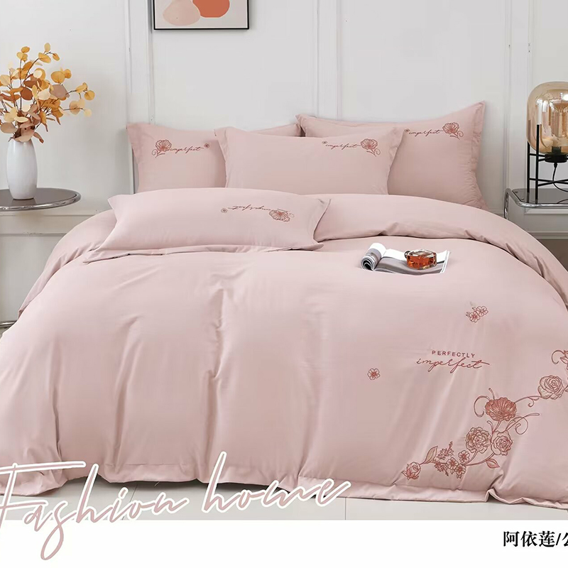 商品名称:优纤家纺 2024新款亲肤舒适绣花四件套-阿依莲 阿依莲-仙女粉
