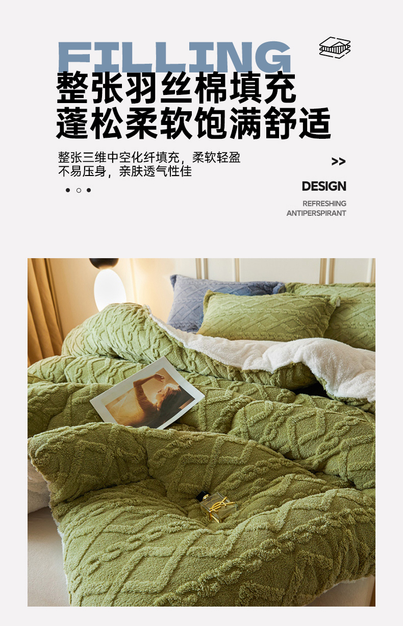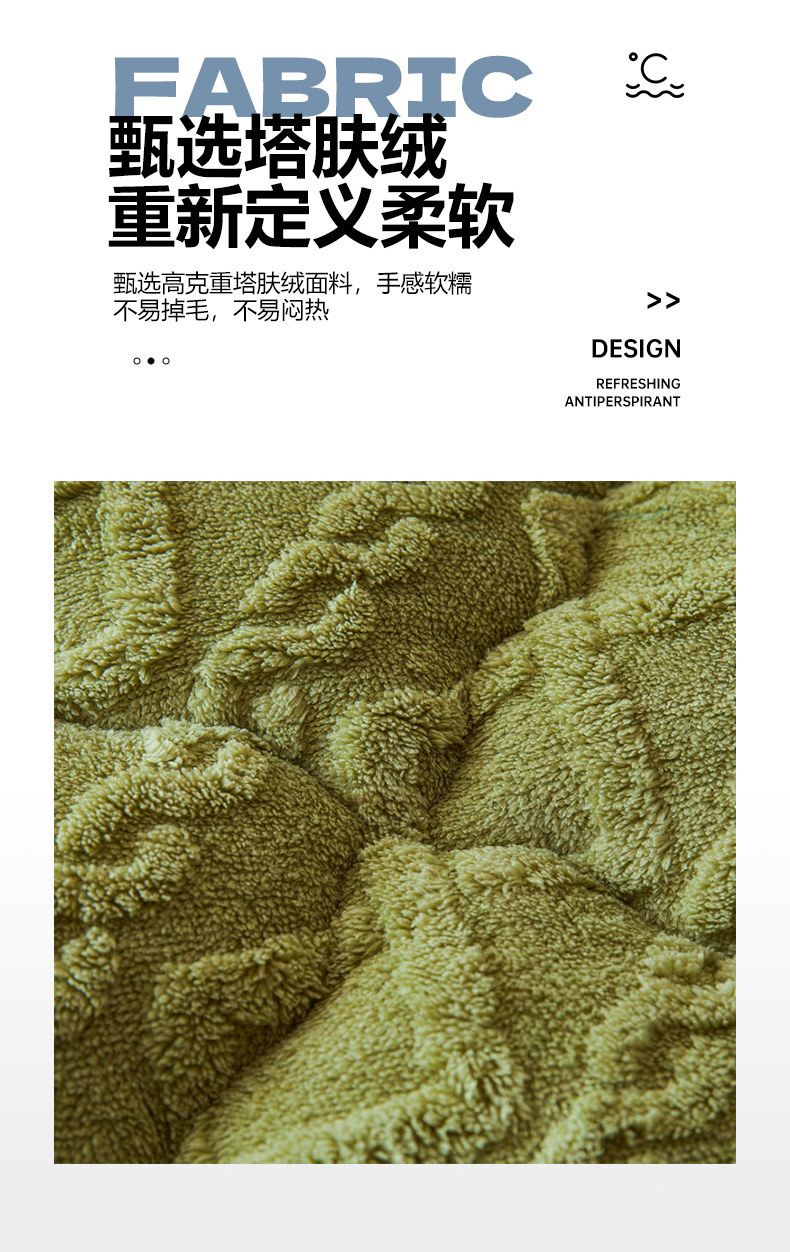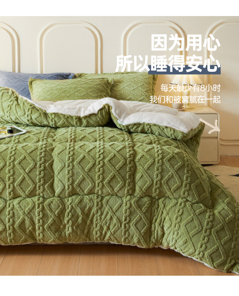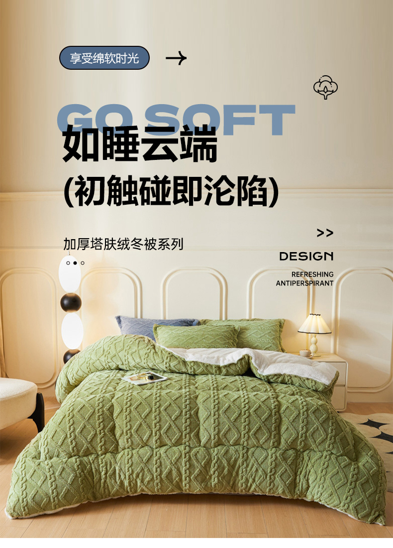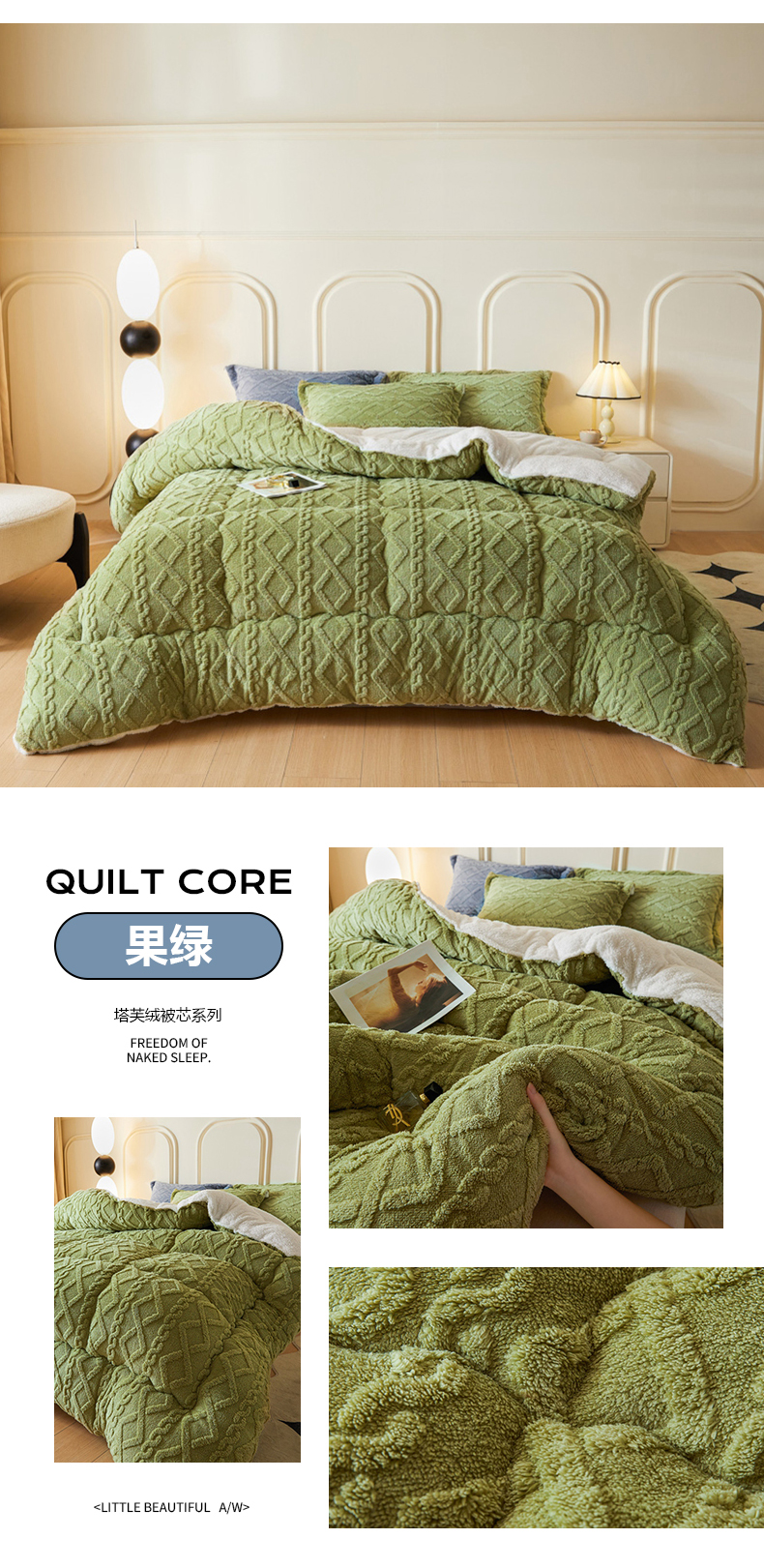 • 91家纺网 家纺一手货源 找家纺 吉祥家纺 2024新款纯色塔芙绒被芯系列 果绿