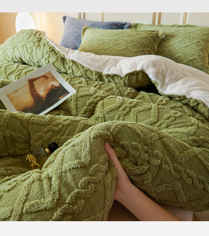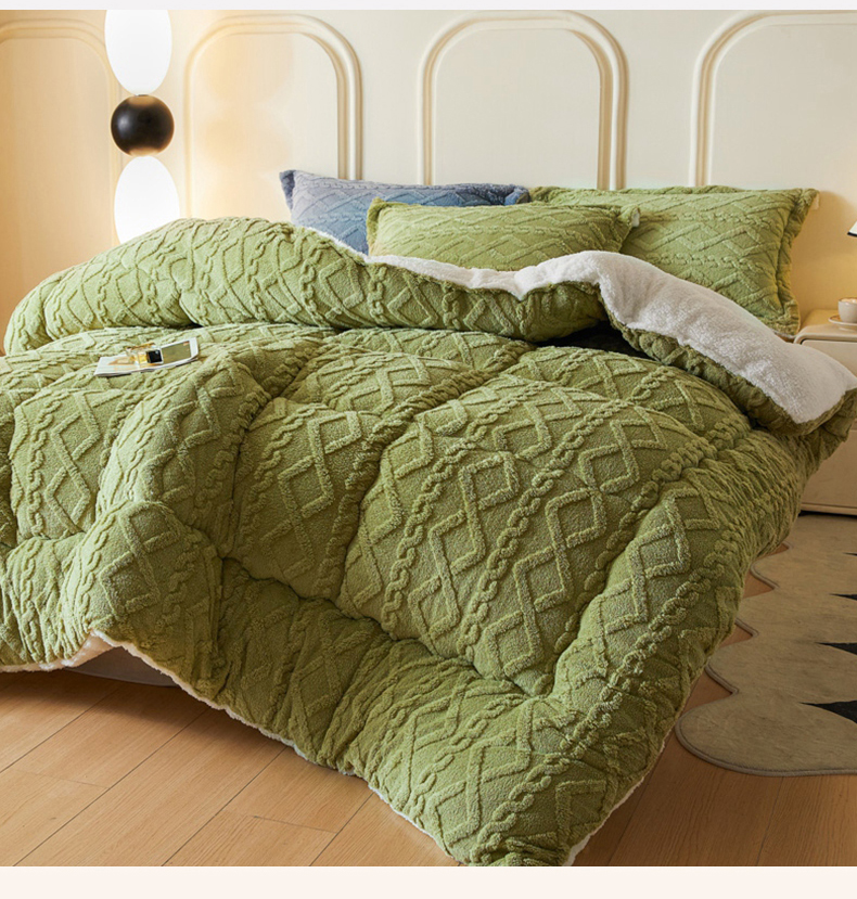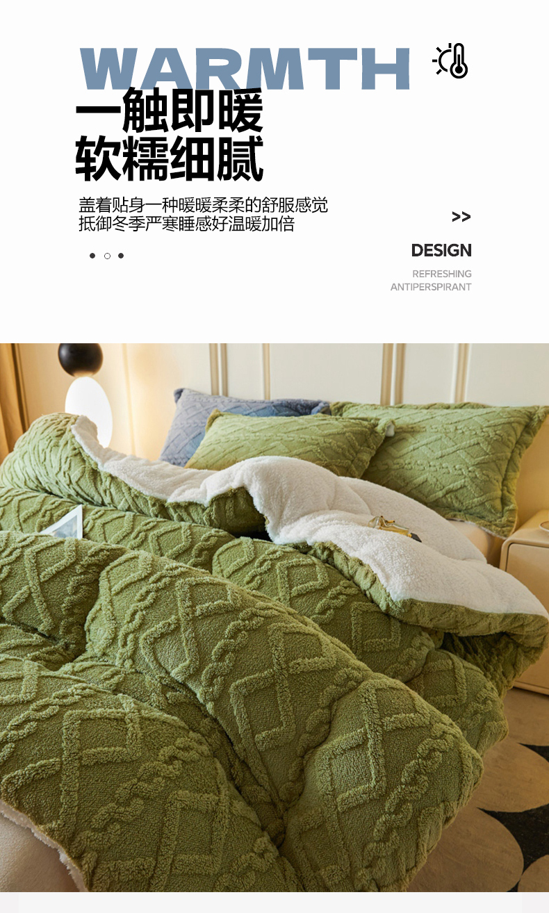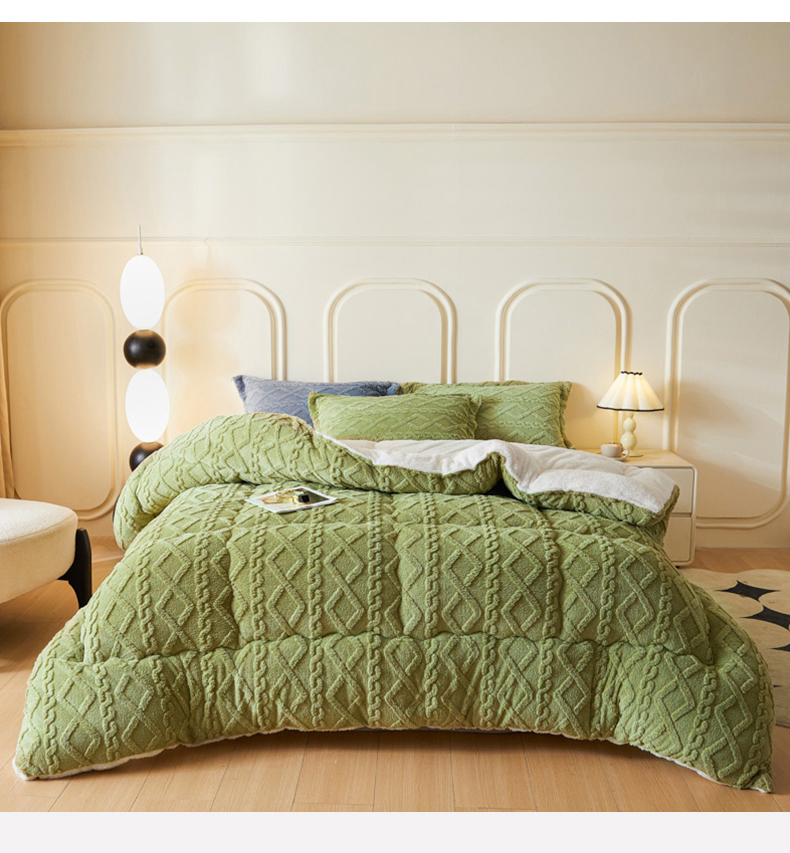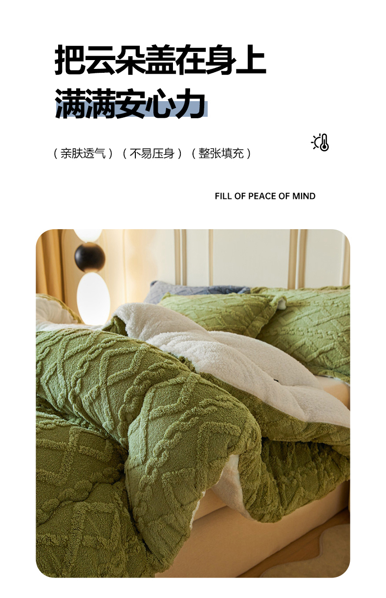 • 91家纺网 家纺一手货源 找家纺 吉祥家纺 2024新款纯色塔芙绒被芯系列 果绿