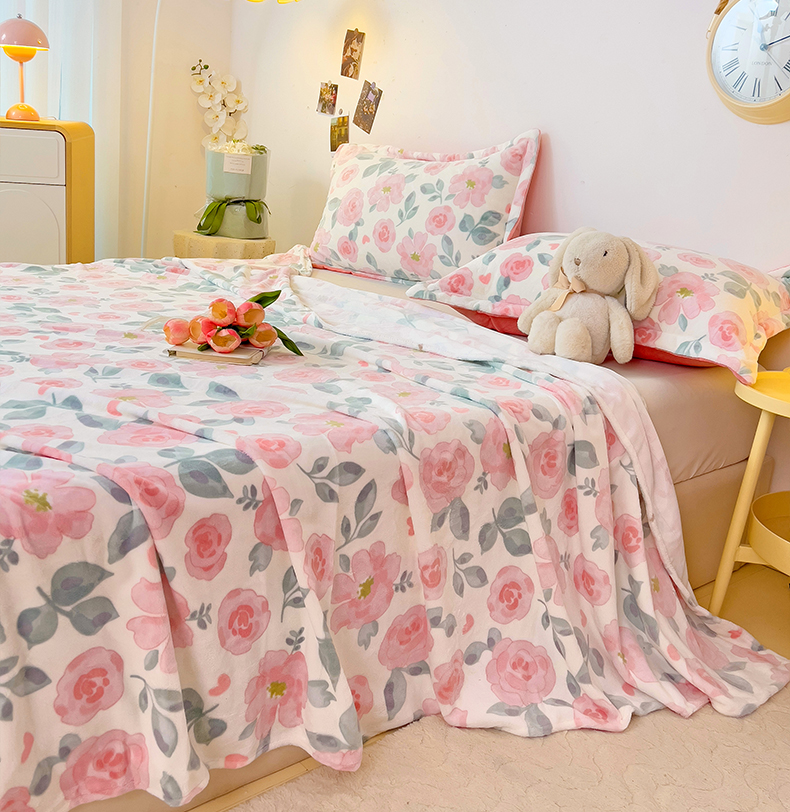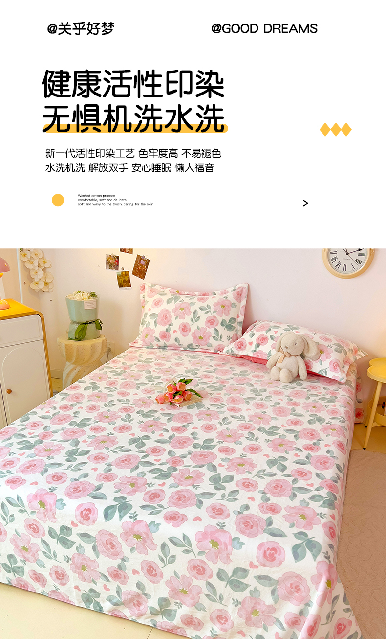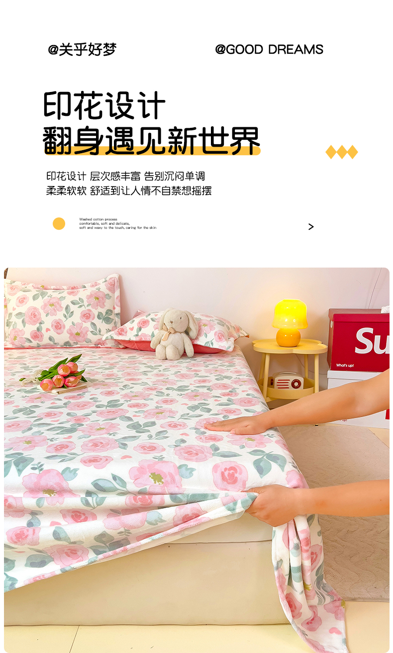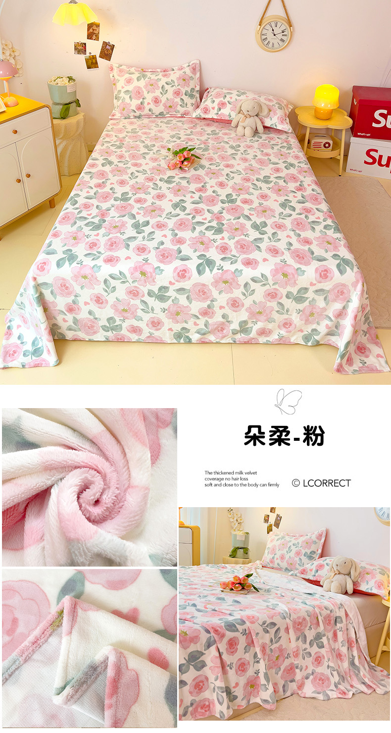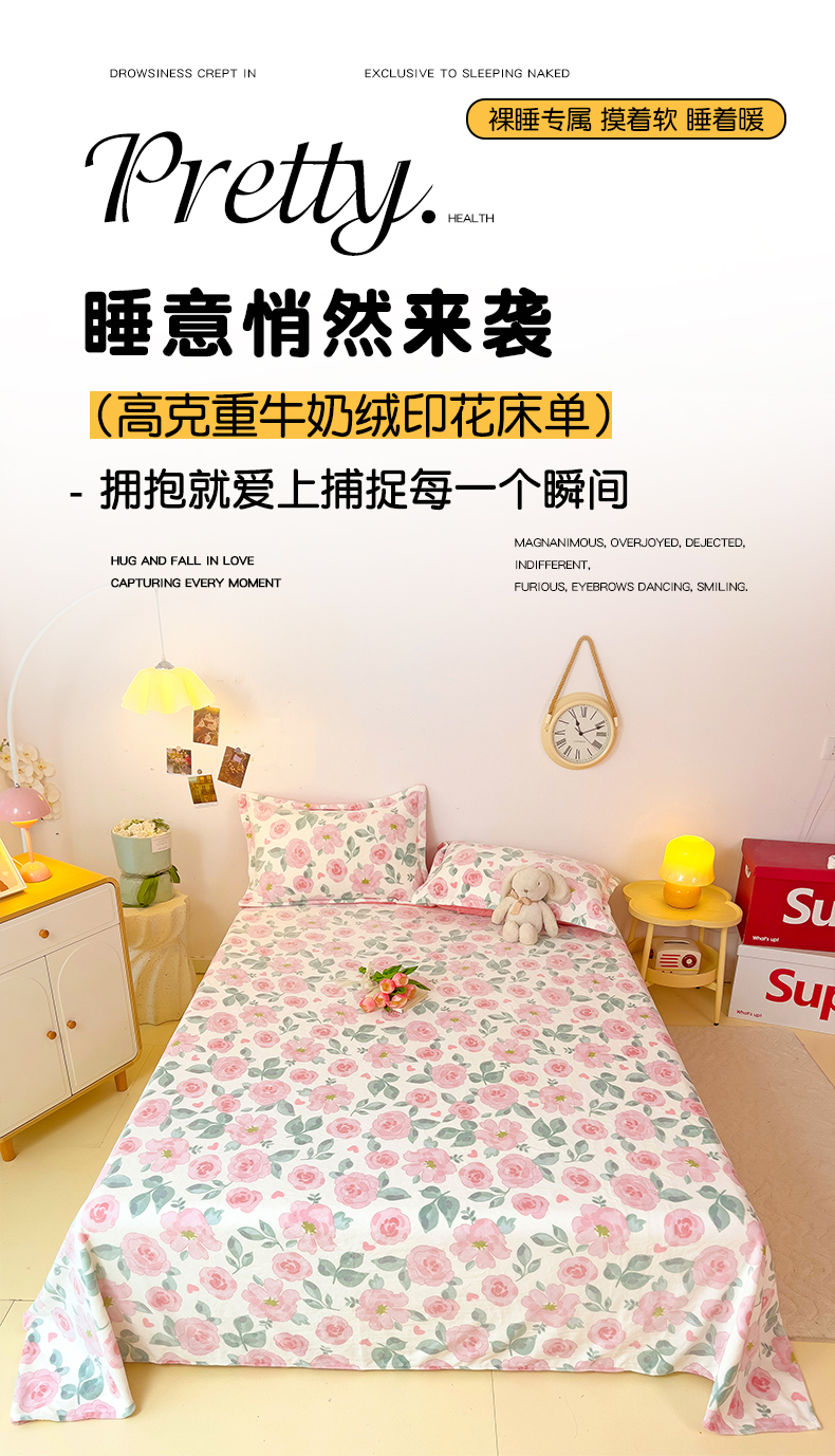 商品名称:大柏树 2025新款A类高克重亲肤舒适牛奶绒印花四件套-单床单可定制 朵柔-粉