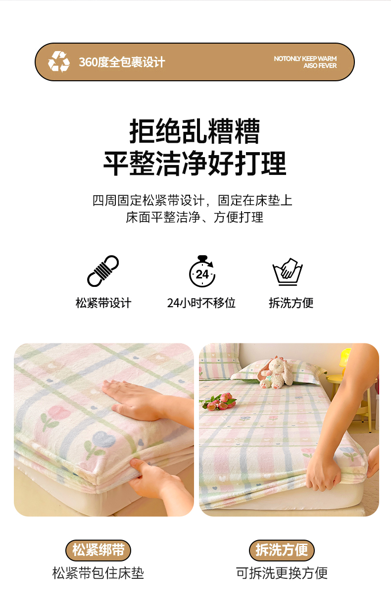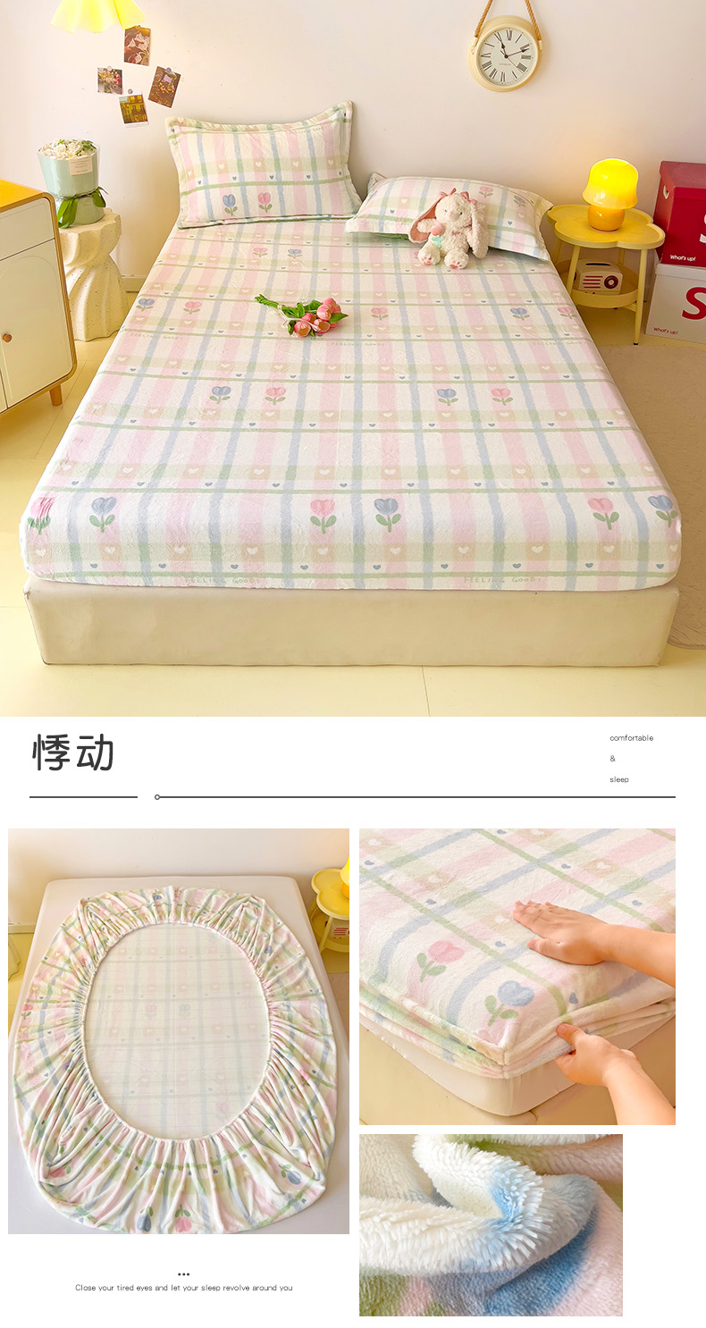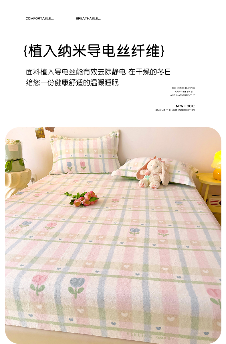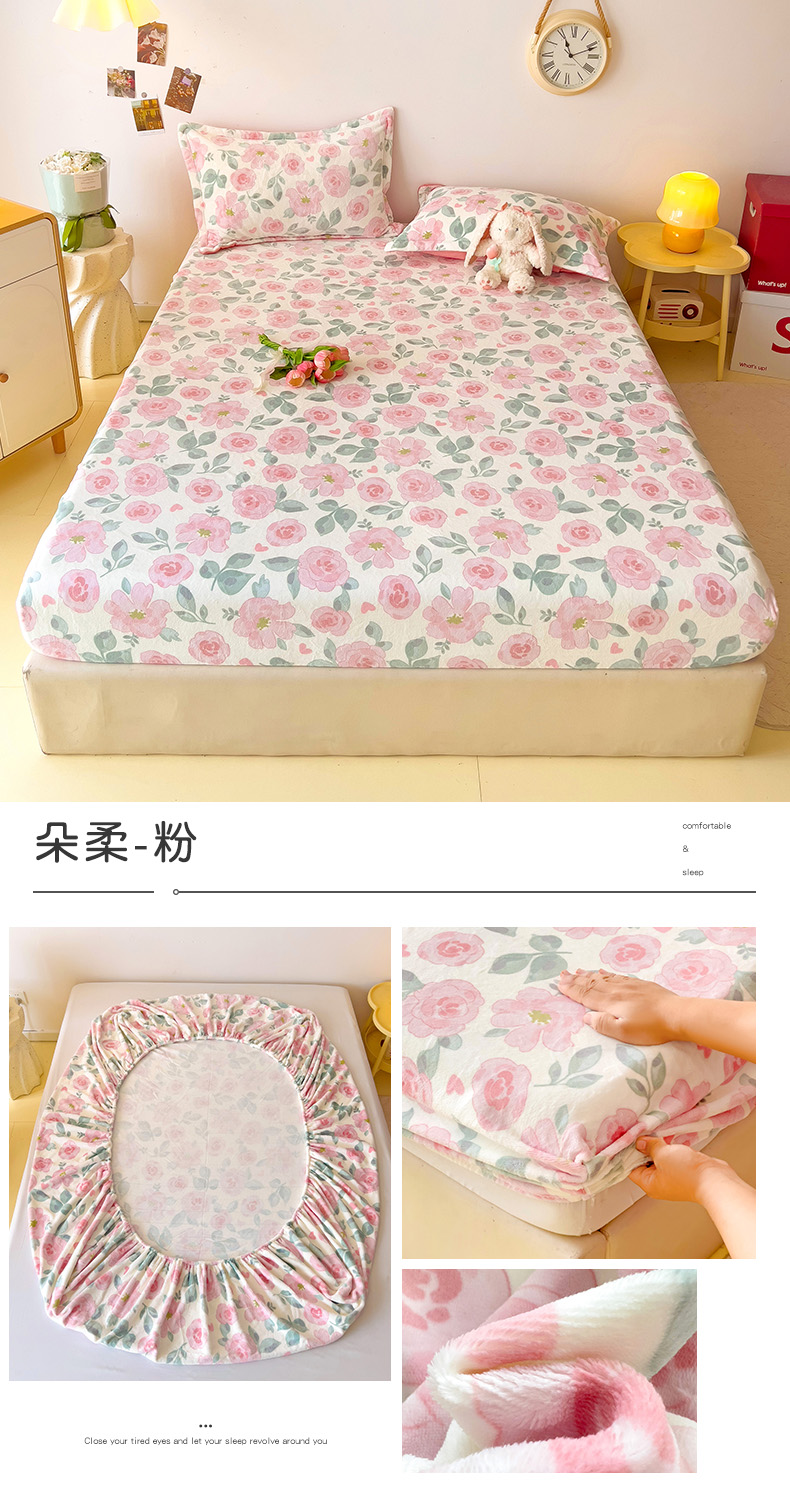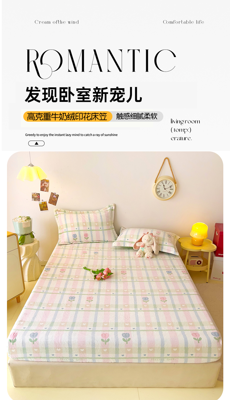 商品名称:大柏树 2025新款A类高克重亲肤舒适牛奶绒印花四件套-单床笠可定制 悸动