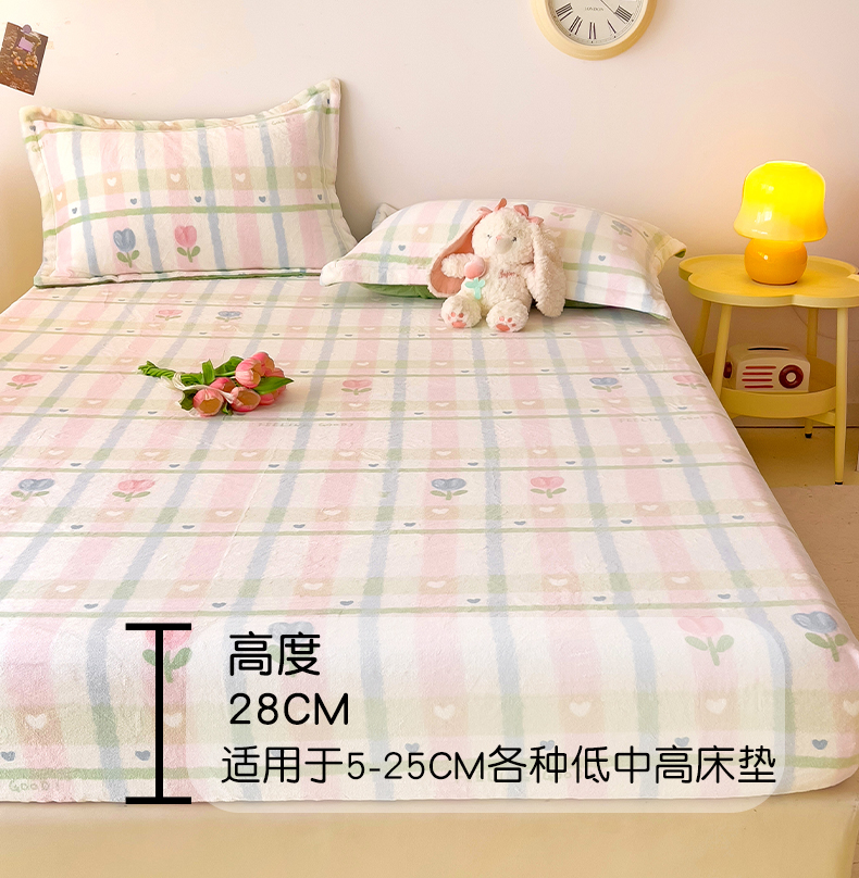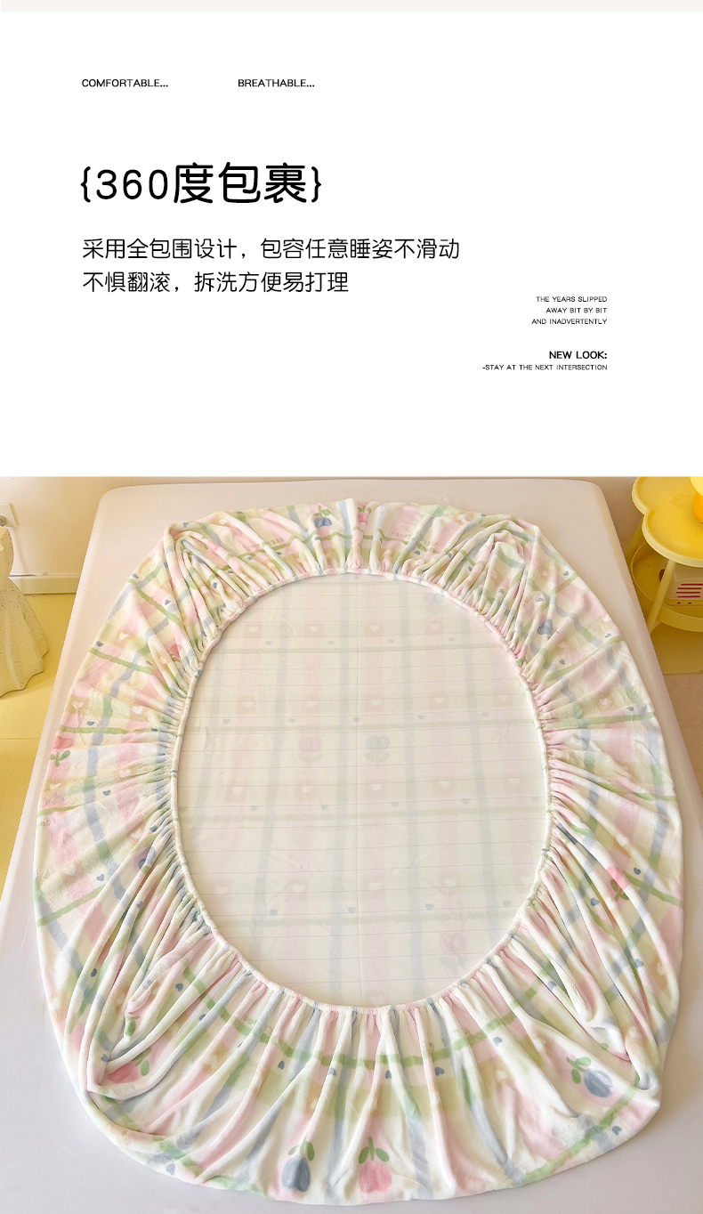 大柏树 2025新款A类高克重亲肤舒适牛奶绒印花四件套-单床笠可定制 悸动