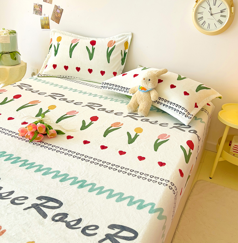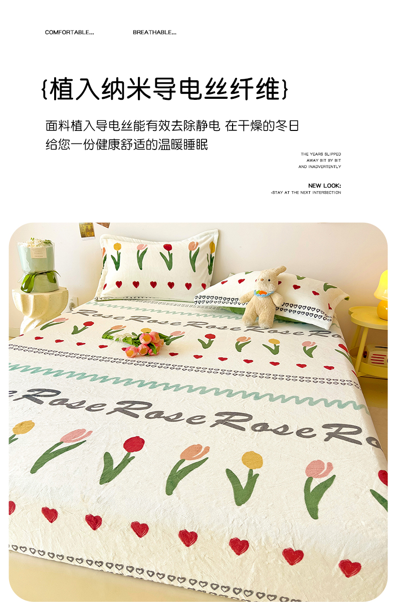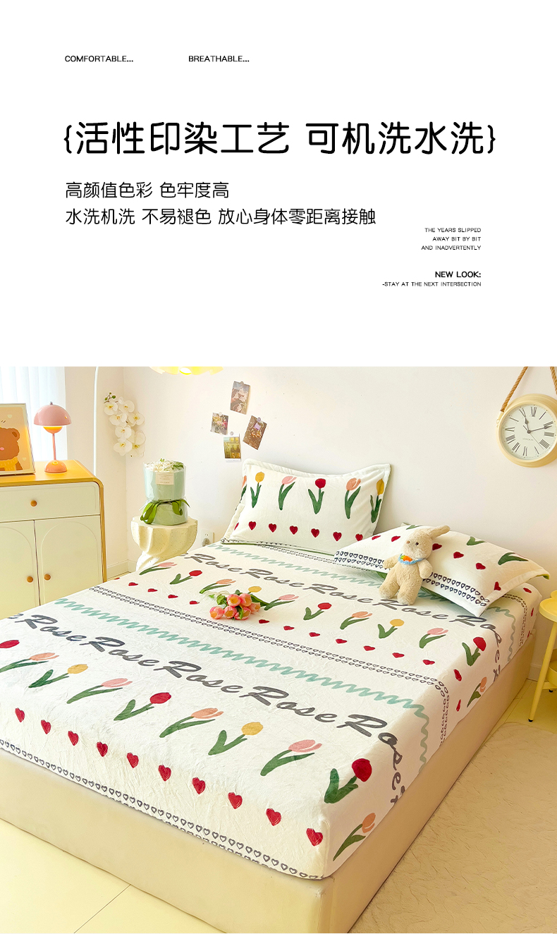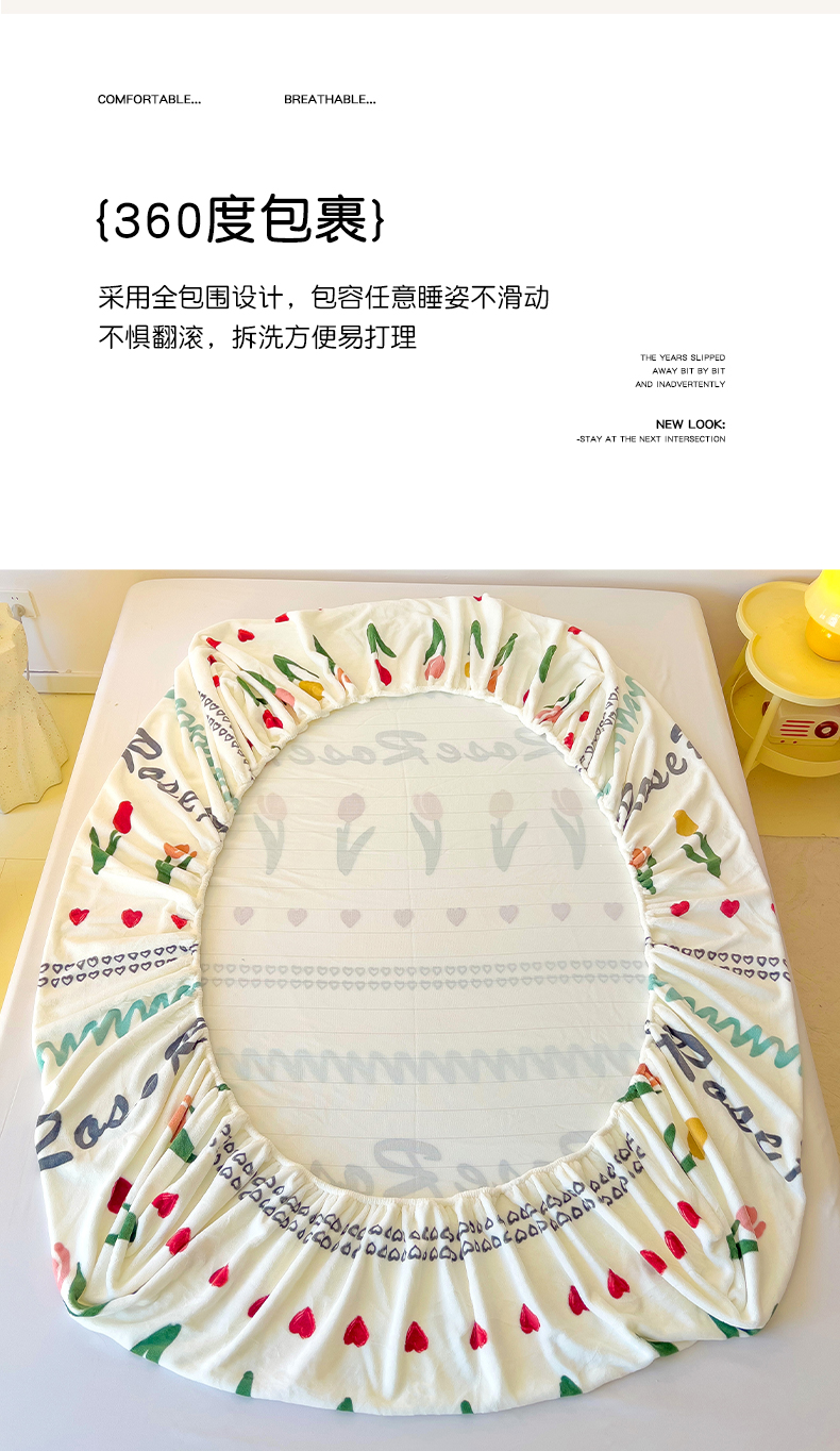 大柏树 2025新款A类高克重亲肤舒适牛奶绒印花四件套-单床笠可定制 寻彩