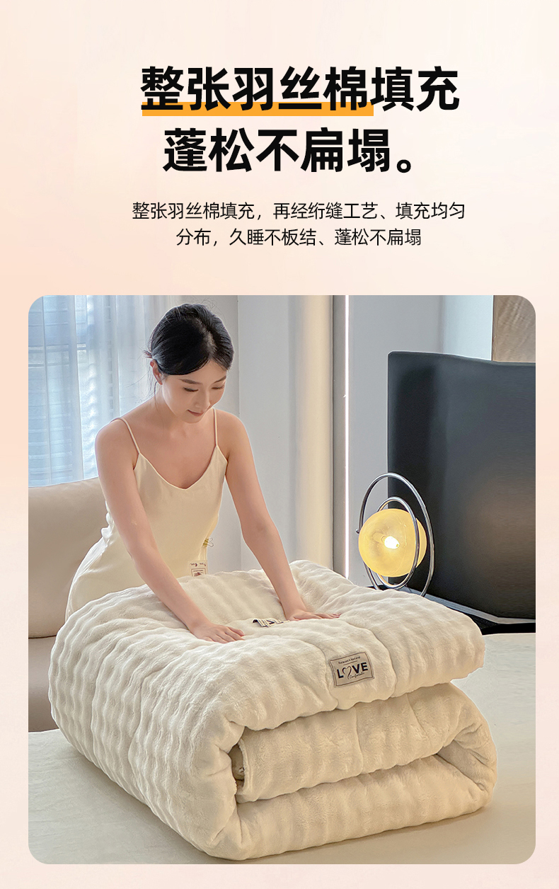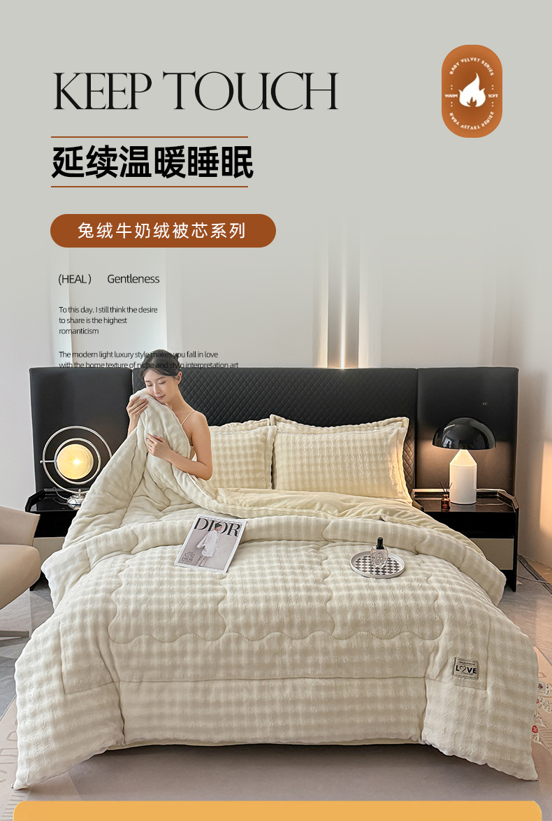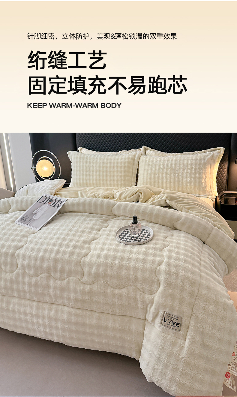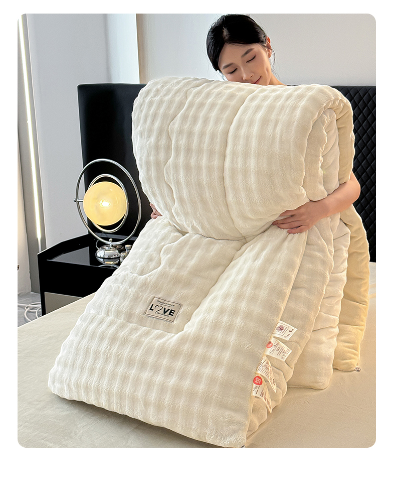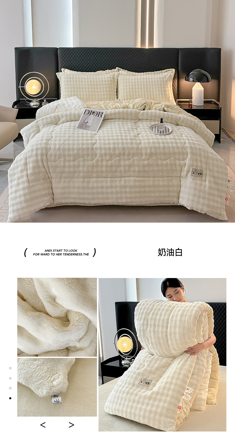 • 91家纺网 家纺一手货源 找家纺 金帛坊 2024新款A类保暖高克重兔绒牛奶绒冬被 奶油白