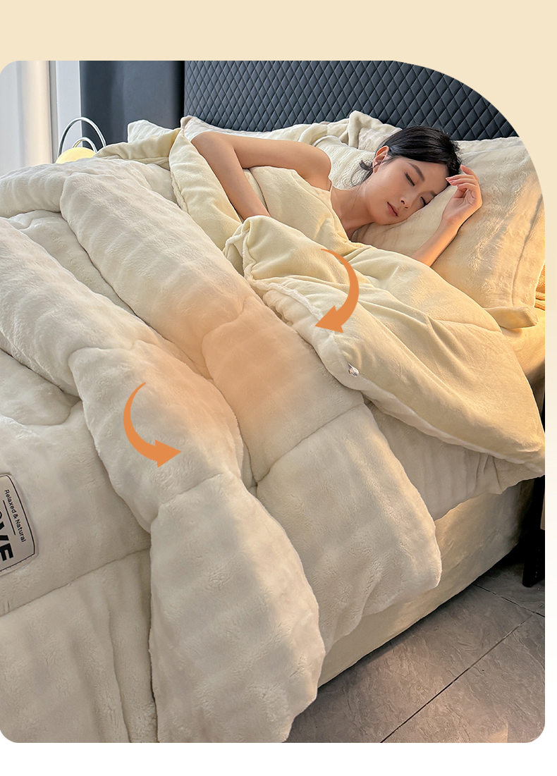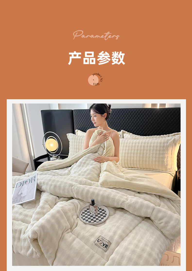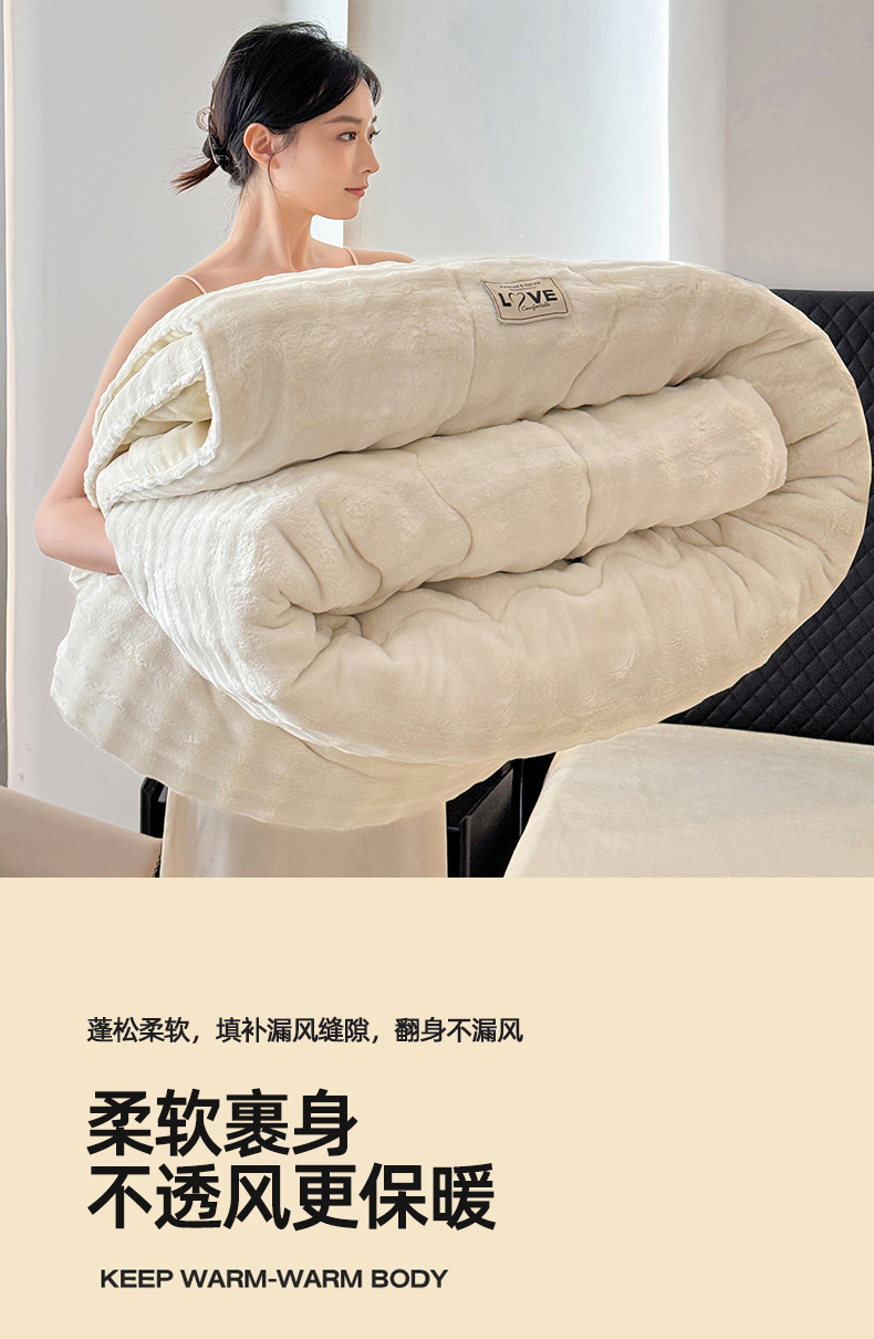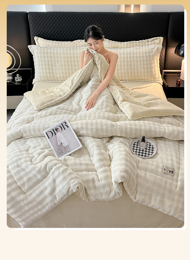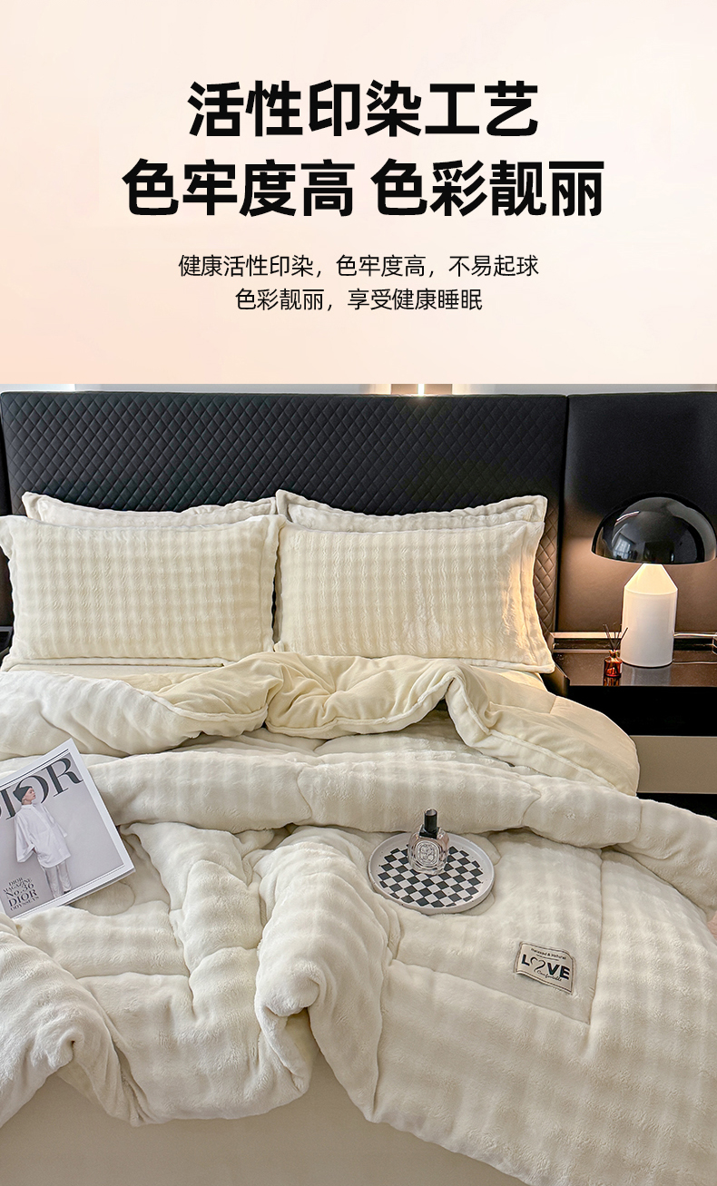 • 91家纺网 家纺一手货源 找家纺 金帛坊 2024新款A类保暖高克重兔绒牛奶绒冬被 奶油白