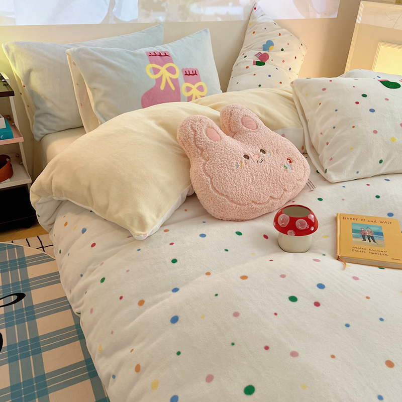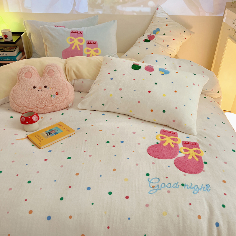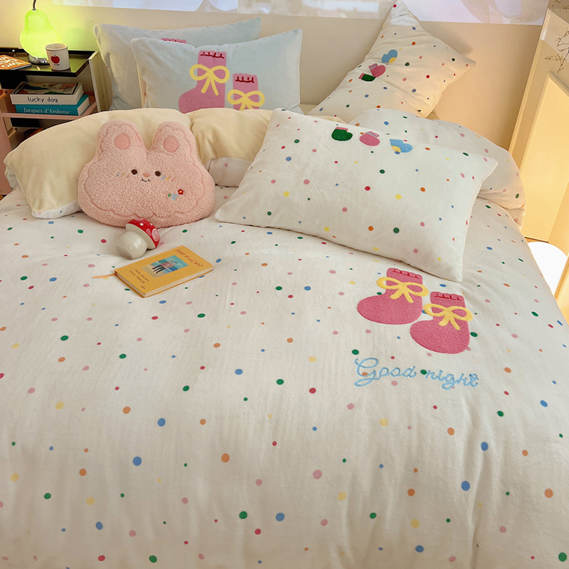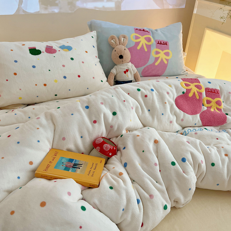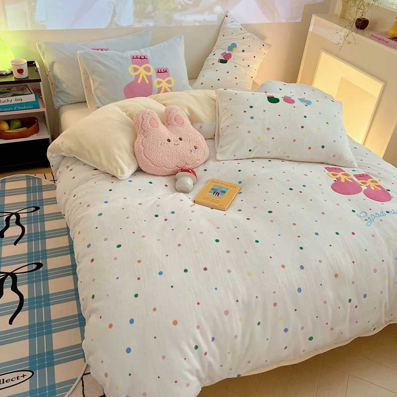 桃喜 2024新款230g牛奶绒绣花系列四件套 彩色波点袜
