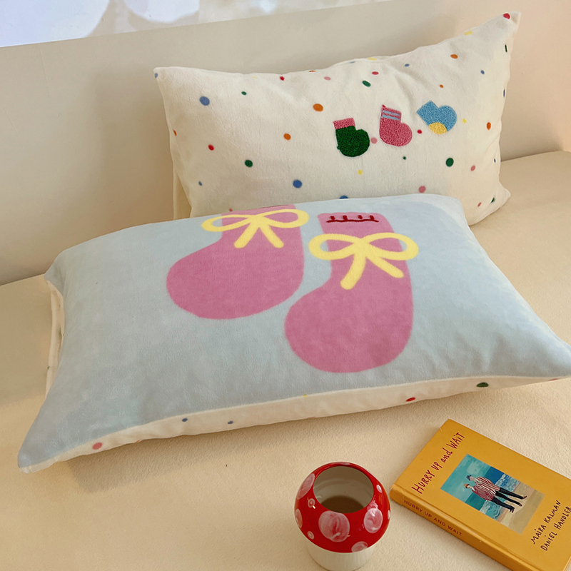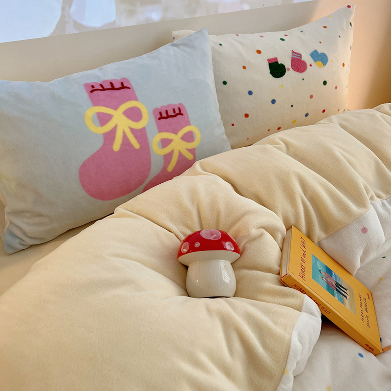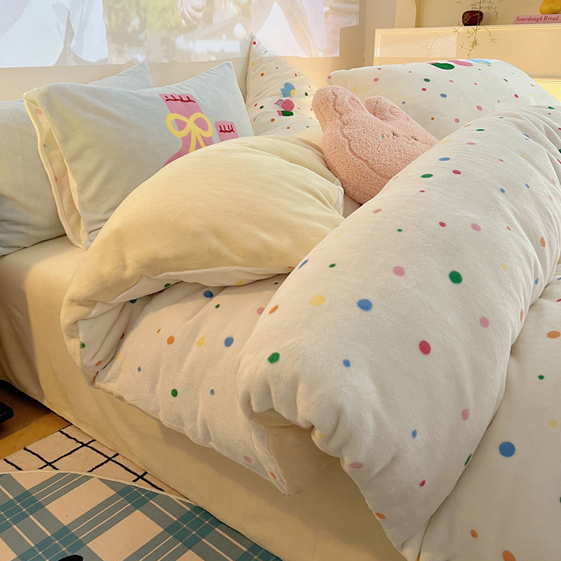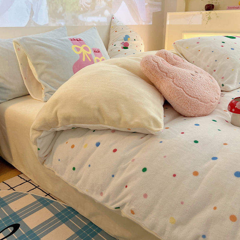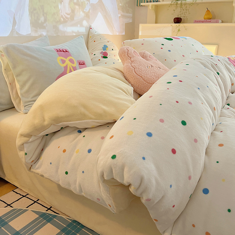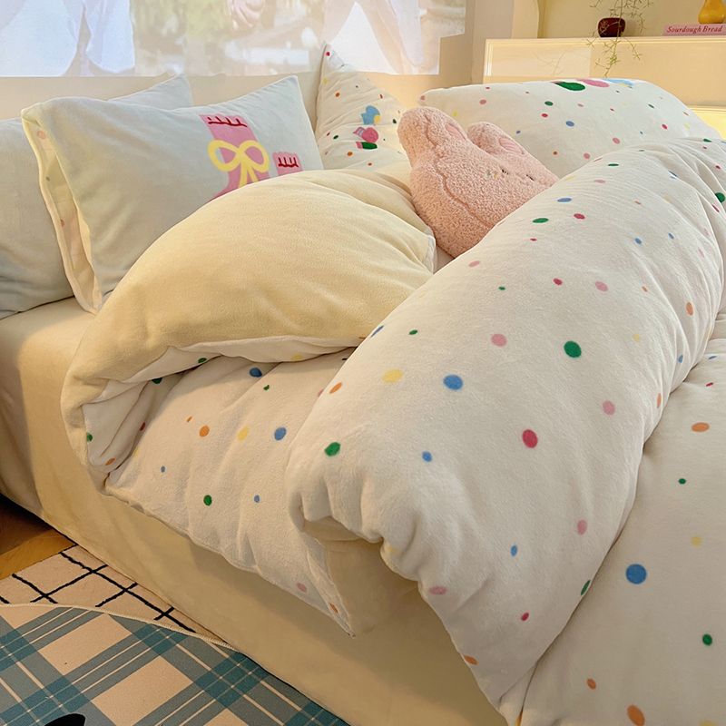 桃喜 2024新款230g牛奶绒绣花系列四件套 彩色波点袜
