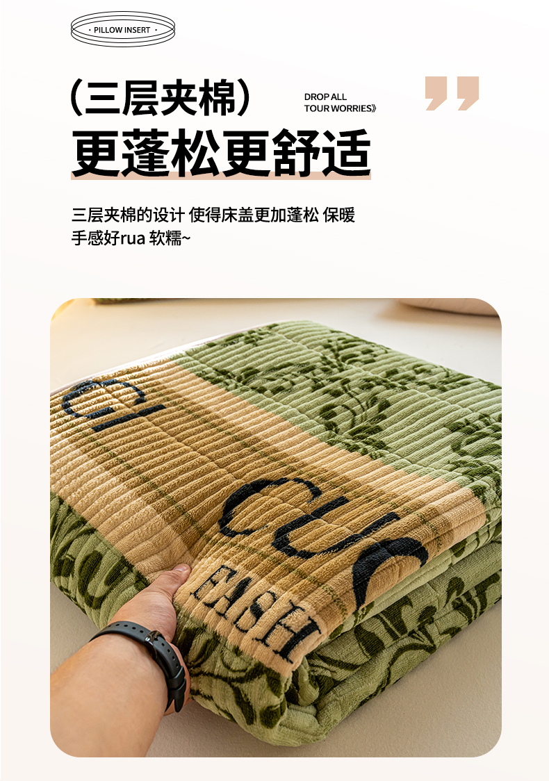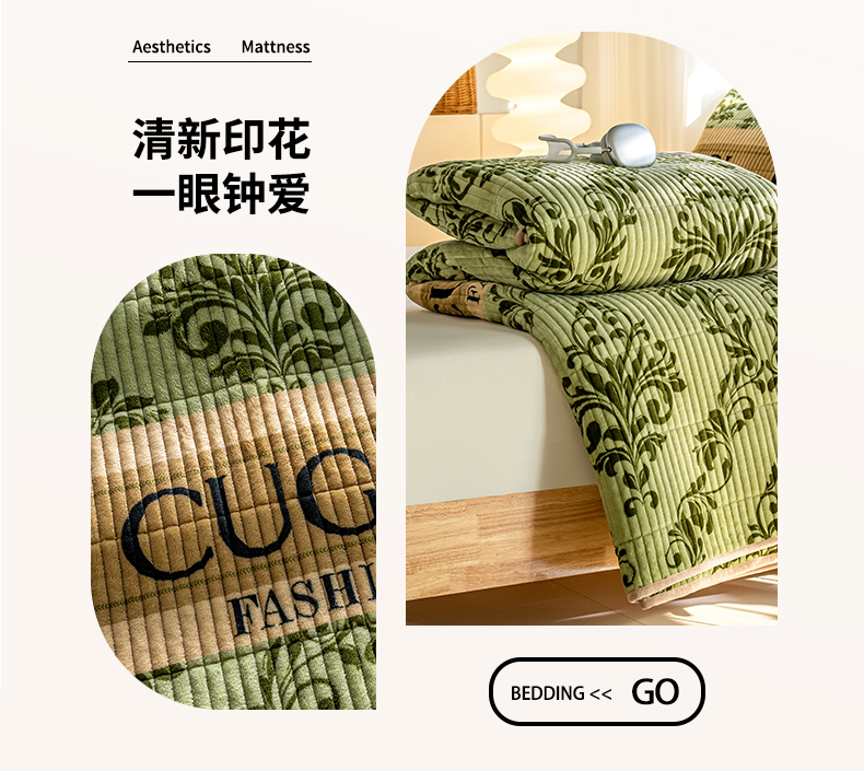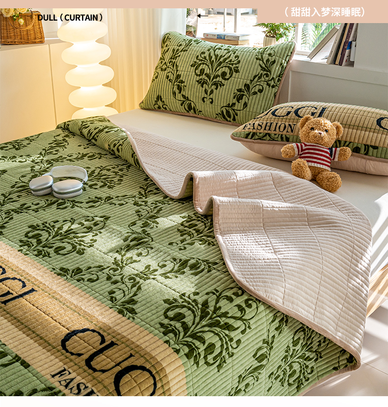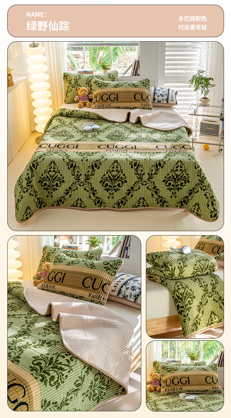 • 91家纺网 家纺一手货源 找家纺 X猫先生 2024新款牛奶绒床盖床垫小清新印花夹棉水洗棉炕盖双面两用 绿野仙踪