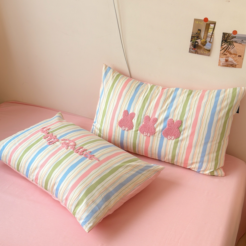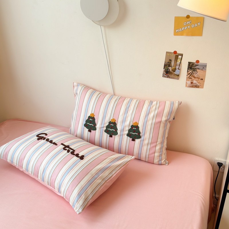 (总)云雀 2025新款全棉印花毛巾绣单枕套系列,爱心满满-粉,爱心满满-紫,彩虹兔-粉,彩虹兔-蓝,圣诞树-粉,圣诞树-紫