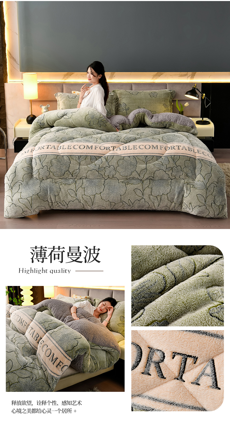 • 91家纺网 家纺一手货源 找家纺 锦逸家居 2024新款AB版雪花绒冬被羊羔绒冬被被子被芯春秋被 薄荷曼波