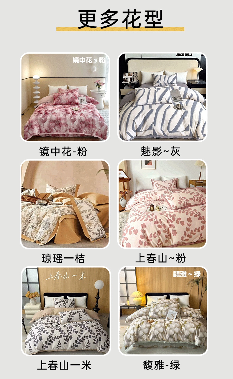 (总2)未来家居 2024新款优帝100支贡缎长绒棉四件套,陌上花开·绿,陌上花开·紫色,莫尔,墨香,沐兮,沐雁-咖,慕凡花语-咖,慕凡花语-绿,奈思,南旬,欧诺,蒲公英·粉,千初,千鸟格,浅浅苏夏,沁雪,倾媛,清婉·粉,清闲时光,清寻-绿,清雅,晴岚,如烟绽放·粉,如玉,若曼-红,若曼-桔,若昭,赛琳,少年派,绅士品格,生如夏花,盛夏,时光,疏影,水云涧,硕果,思念,苏玫-紫,苏沐,苏念,苏珊花园,苏叶,泰迪熊·粉色,泰迪熊·灰色,桃之夭夭,提拉米苏之恋,亭亭玉立·粉色,亭亭玉立·绿,宛菲·灰,晚安熊,晚棠,晚香玉·黄,茶色山野,唯美·紫色,维洛-粉,温婉,羽翼轻飞.灰色,伊甸园,颜安-紫,阳光草莓,韵香,腰果花-蓝,叶婉-粉,叶韵,绽放,叶芷,韵令,伊芙丽,羽茉·蓝,伊兰,原野-灰,伊丽莎,怡雅,逸帆,原野-粉,英伦绅士,优格,悠甜-绿,雨宣-蓝,雨宣,熊宝宝,杏花微雨·灰,知画,心恋情缘,惜春,心动,闲庭花落,幸运兔,紫岸汀兰,星琪,幸运旋律,香榭丽娜,紫薇,醉花颜
