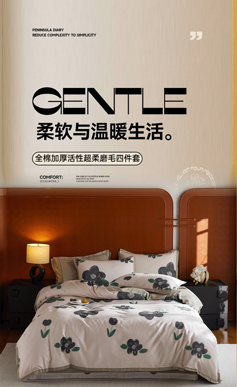 (总)未来家居 2024新款卡口款全棉加厚活性超柔磨毛四件套