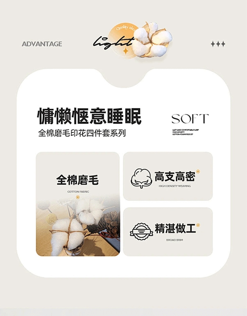 商品名称:(总)未来家居 2024新款卡口款全棉加厚活性超柔磨毛四件套