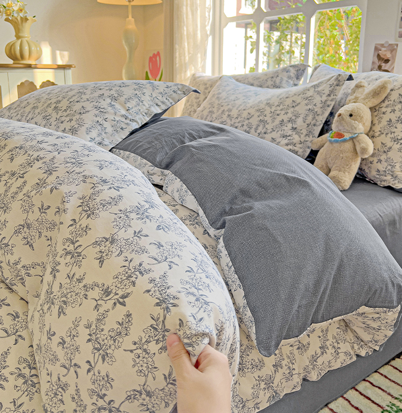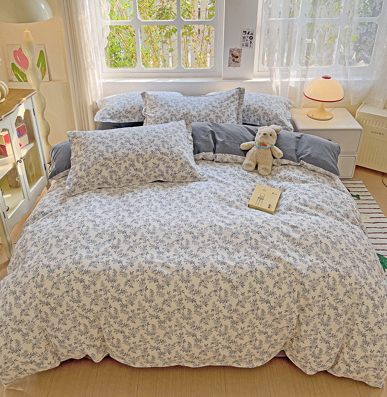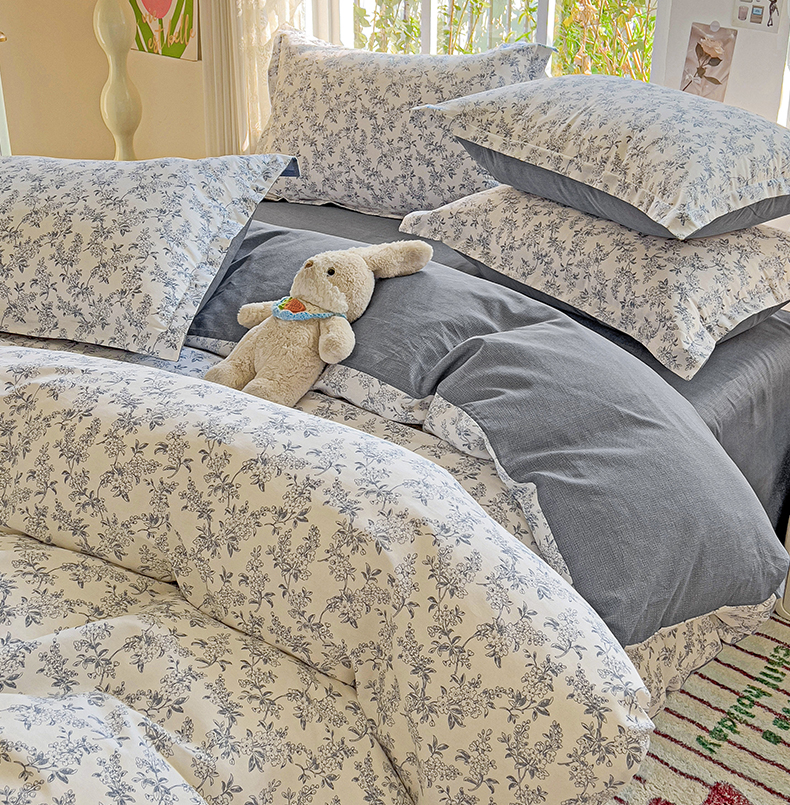 当前位置: 91家纺网 > 商品网购 > 床品套件 > 四件套 > 全棉普通四件套 > 卡普纯棉全棉四件套13070喷气床单款床笠款三件套 墨兰