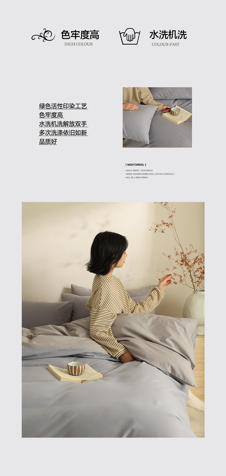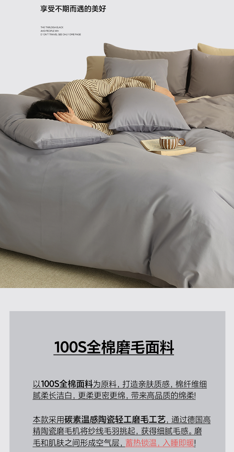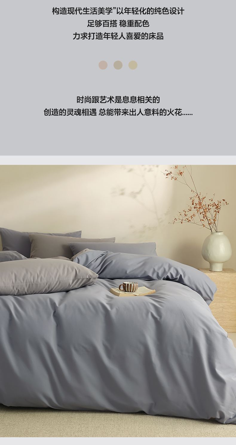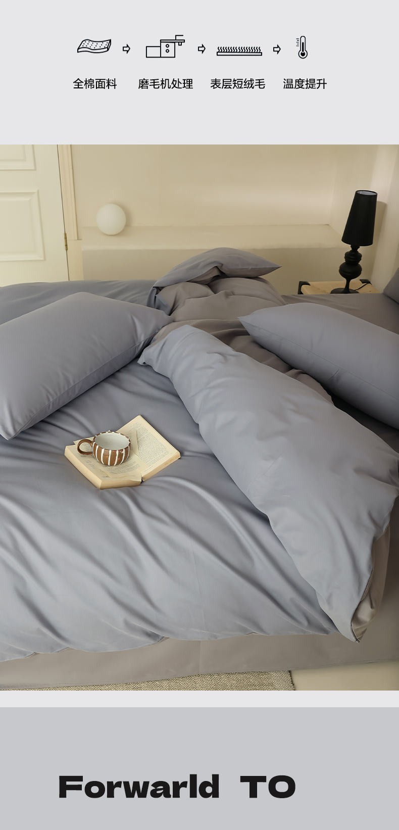 当前位置: 91家纺网 > 商品网购 > 床品套件 > 四件套 > 长绒棉四件套 > 轩和家居 2024新款50S长绒棉磨毛四件套(控价:179 、229 、249 床笠+10元) 蓝莓紫+中灰