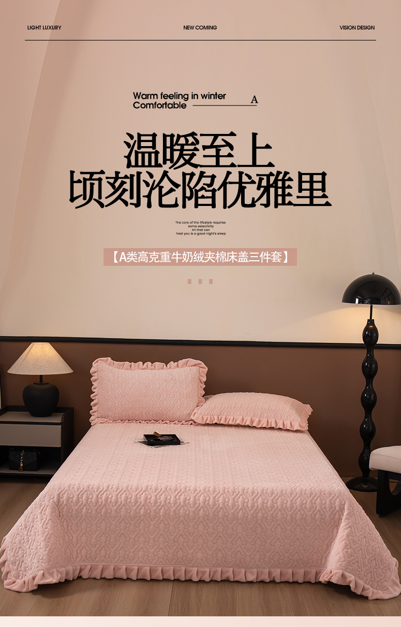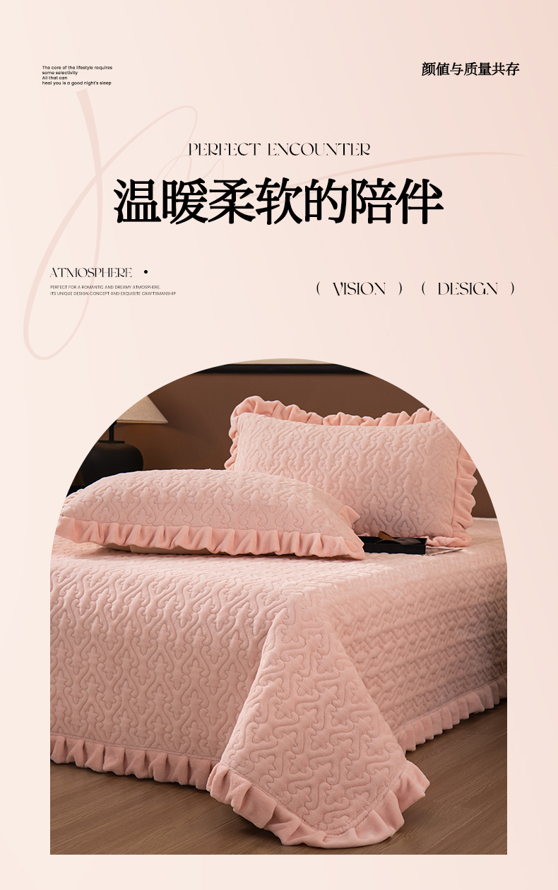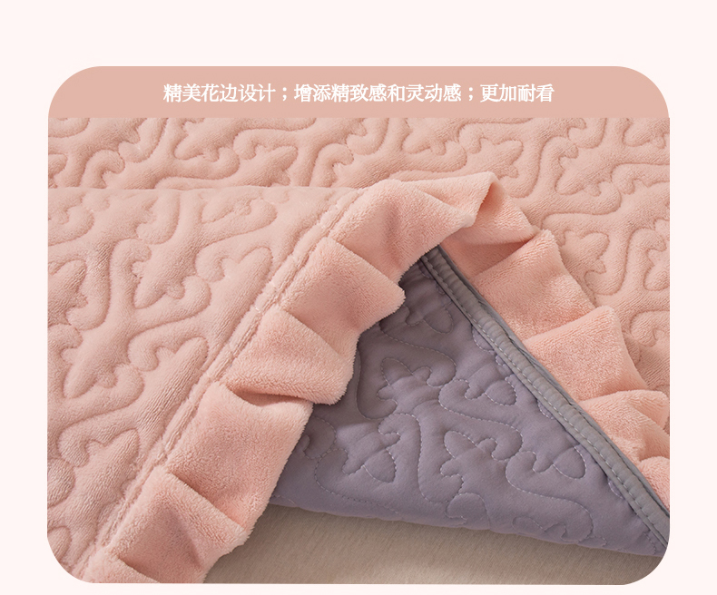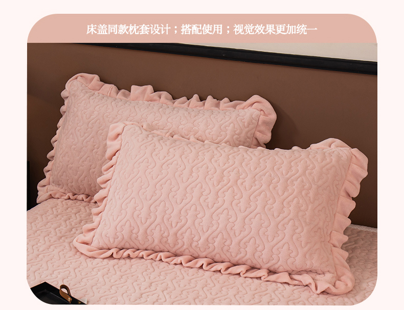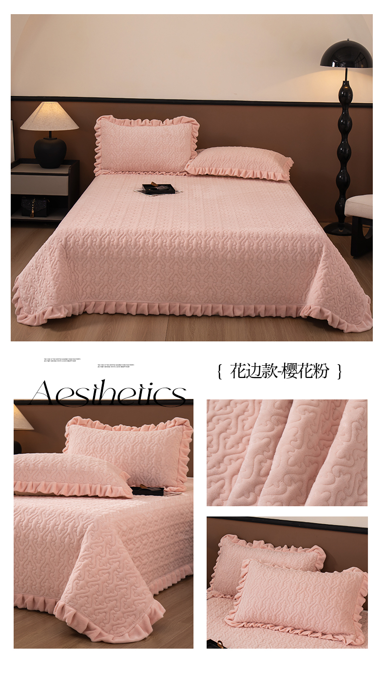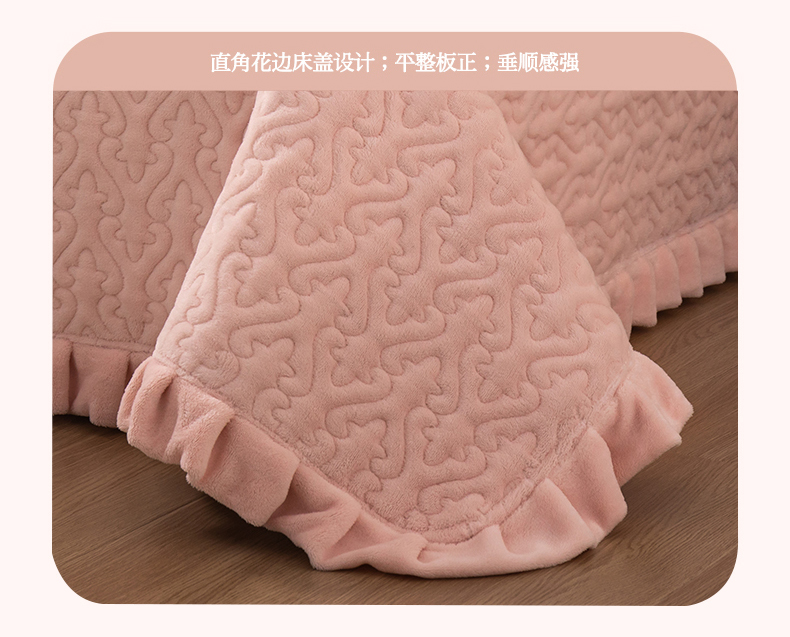 商品名称:2025新款230克牛奶绒加厚床盖 花边款-樱花粉