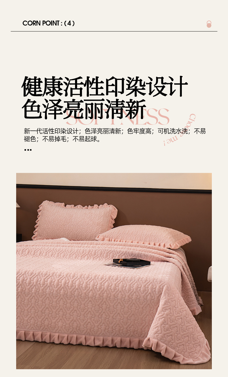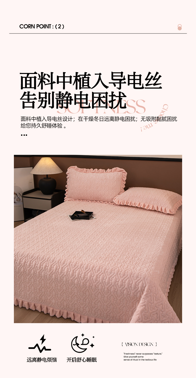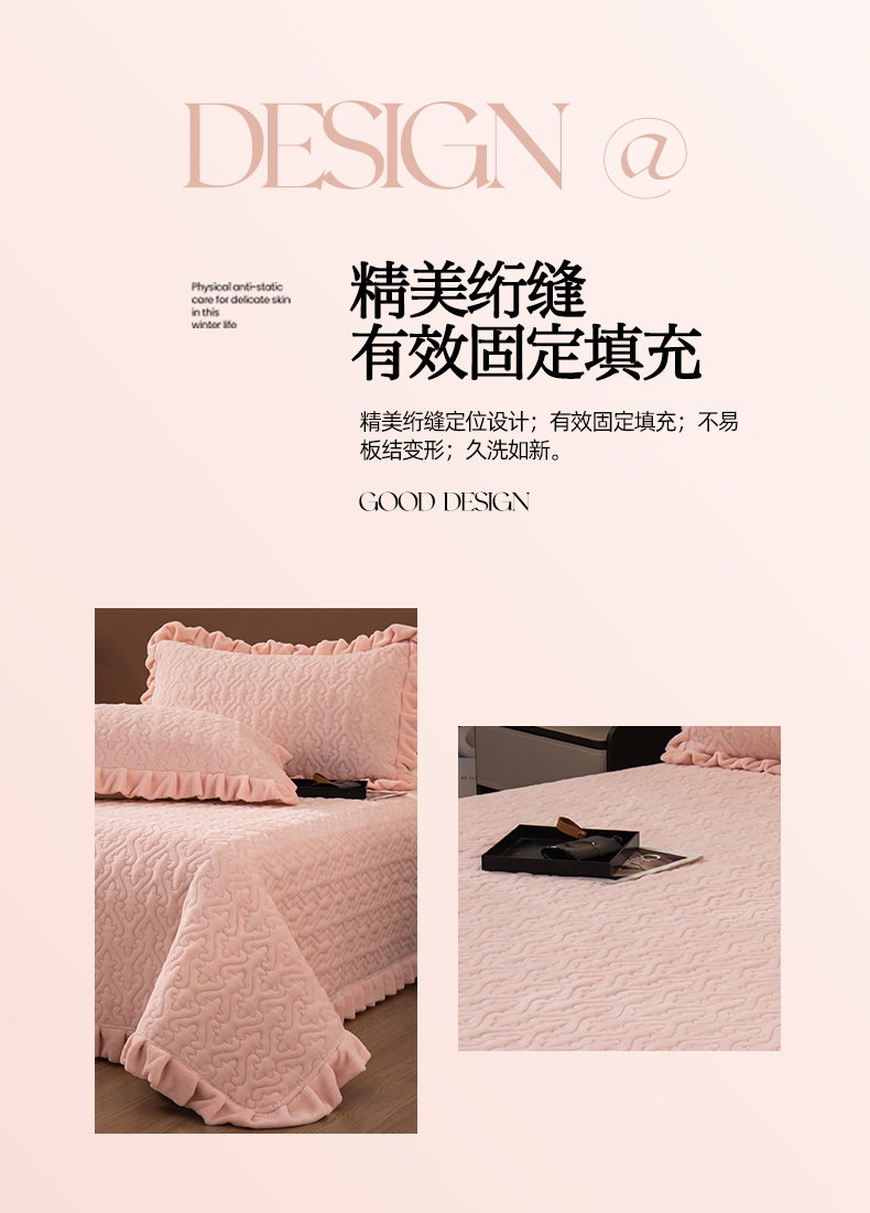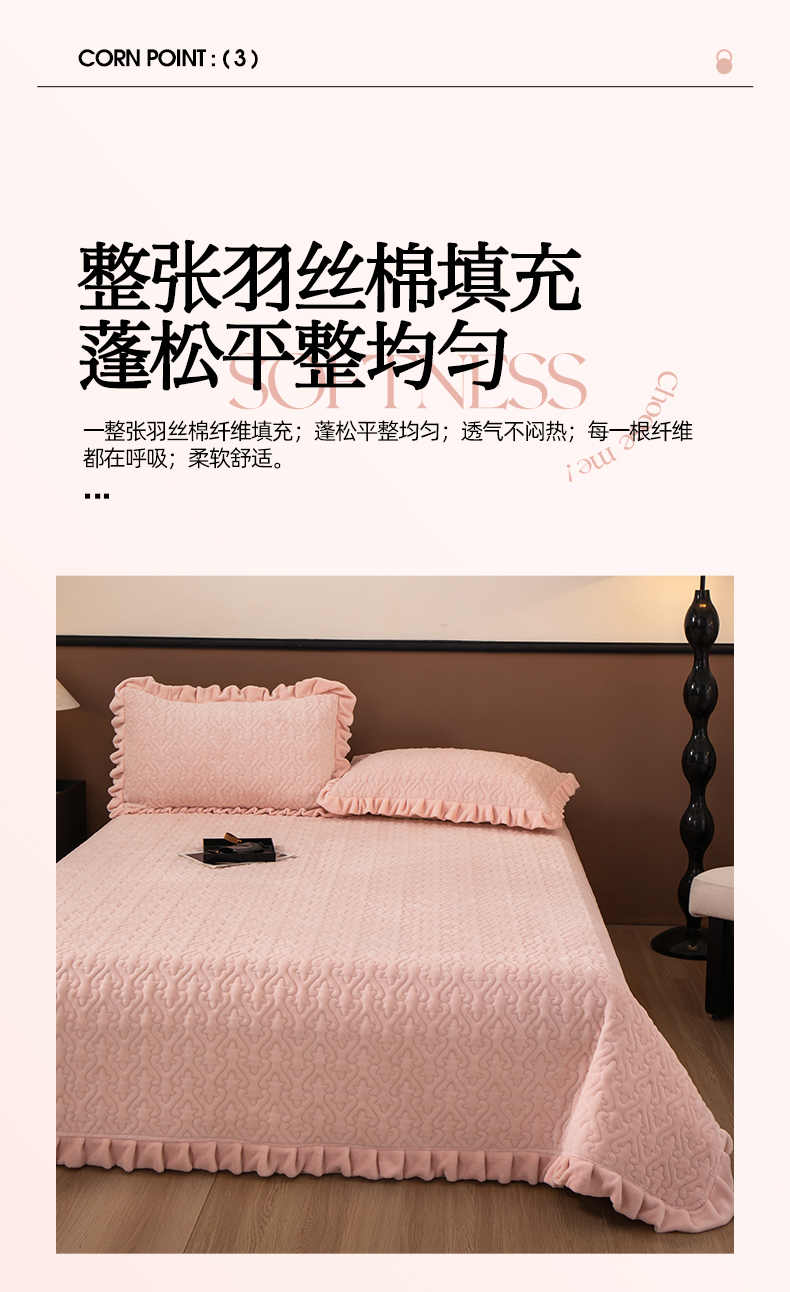 商品名称:2025新款230克牛奶绒加厚床盖 花边款-樱花粉