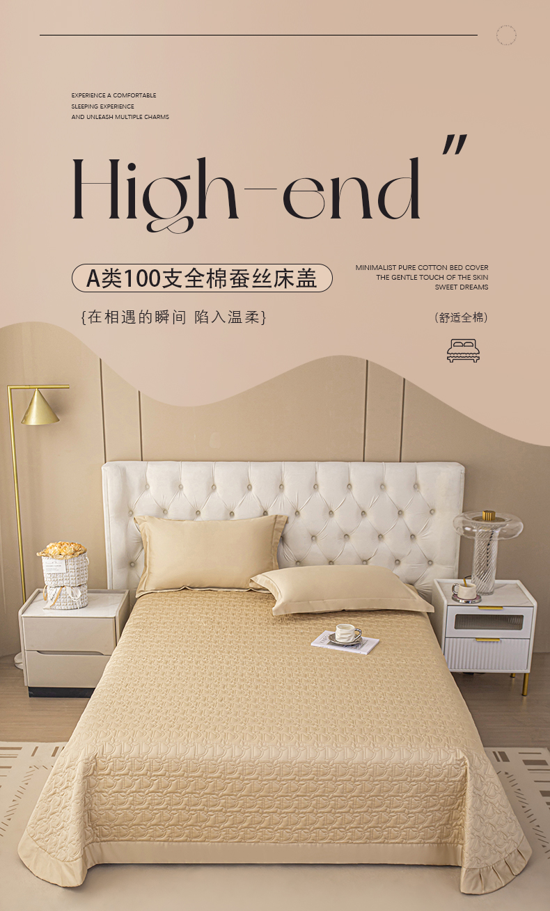 商品名称:金喜 2024新款100支全棉蚕丝床盖三件套D型绗缝系列 迷雾金