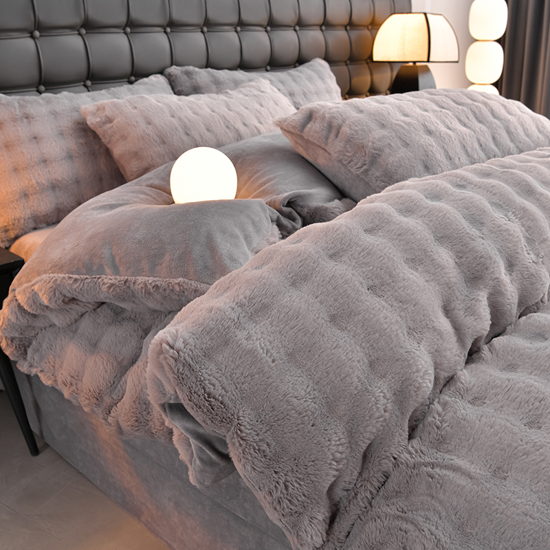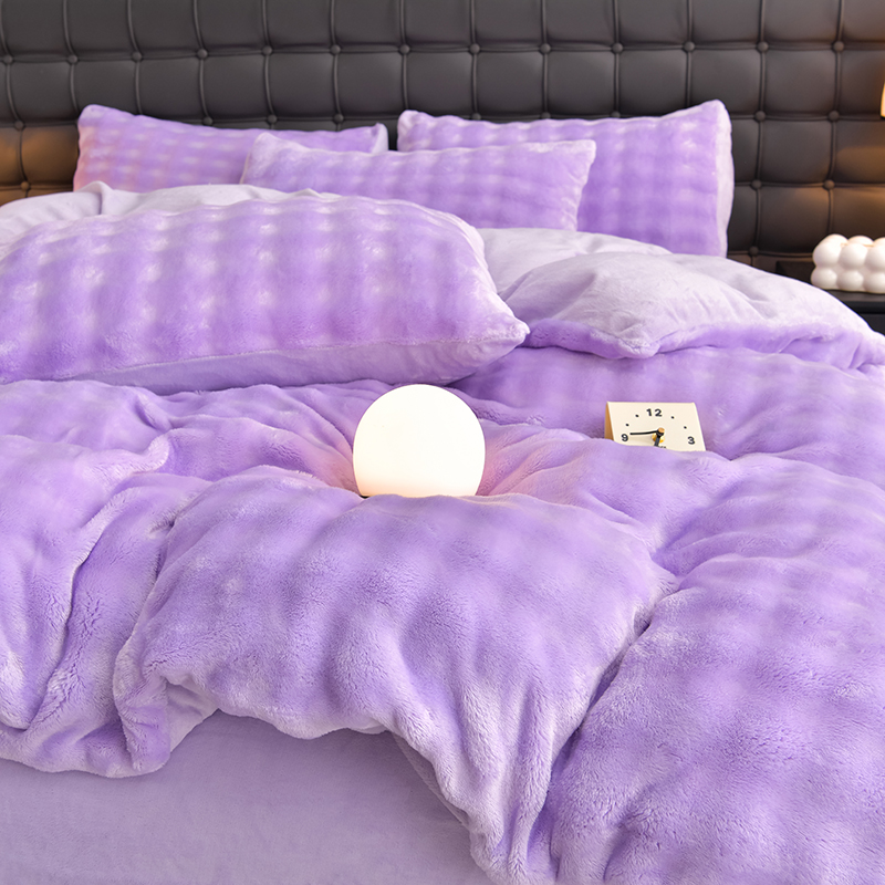 (总)爱上家居 2024新款AB版兔兔绒牛奶绒四件套,粉色,灰色,绿色,驼色,紫色