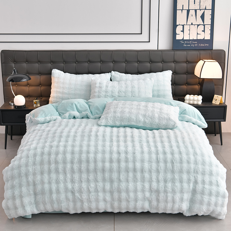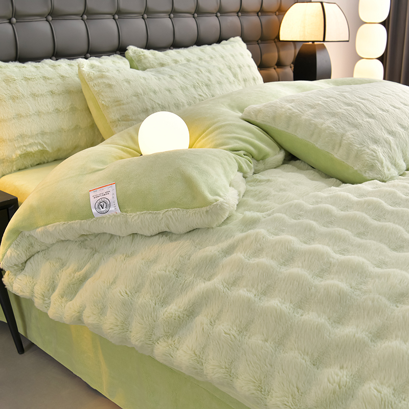 商品名称:爱上家居 2024新款亲肤舒适纯色兔兔绒牛奶绒四件套 深绿