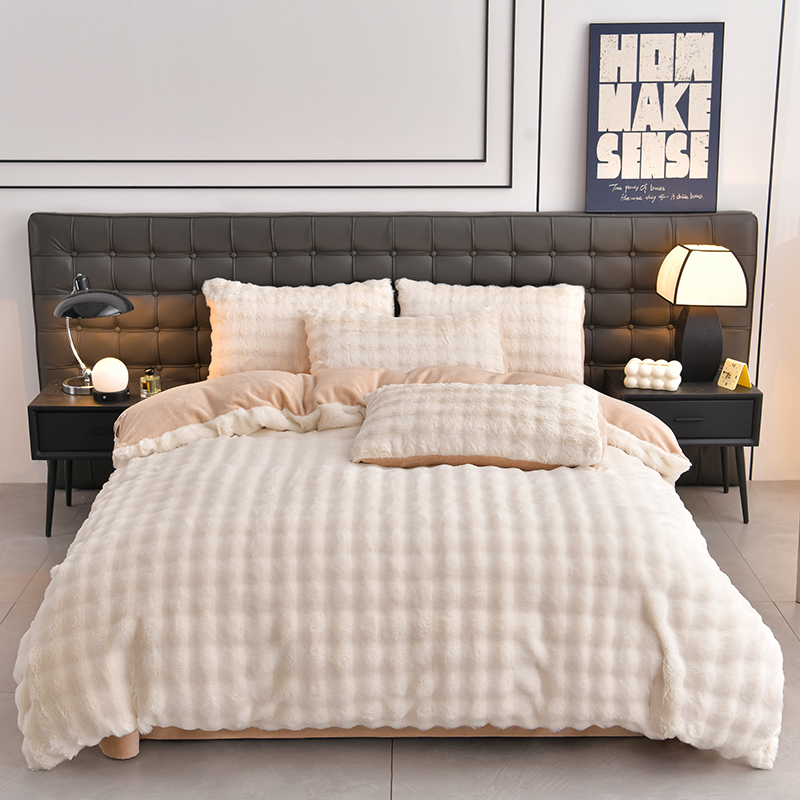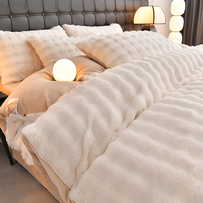 (总)爱上家居 2024新款亲肤舒适纯色兔兔绒牛奶绒四件套,白色,粉色,灰色,米白,苹果绿,浅蓝,深绿,驼色,紫色
