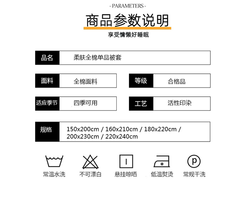 商品名称:(总)京天家纺 2024新款12868全棉单品被套(尺寸足,有预留)