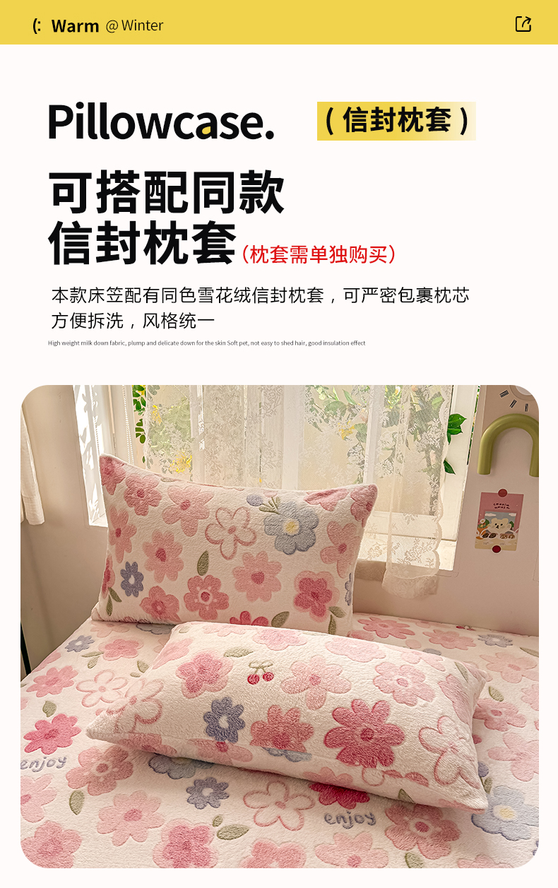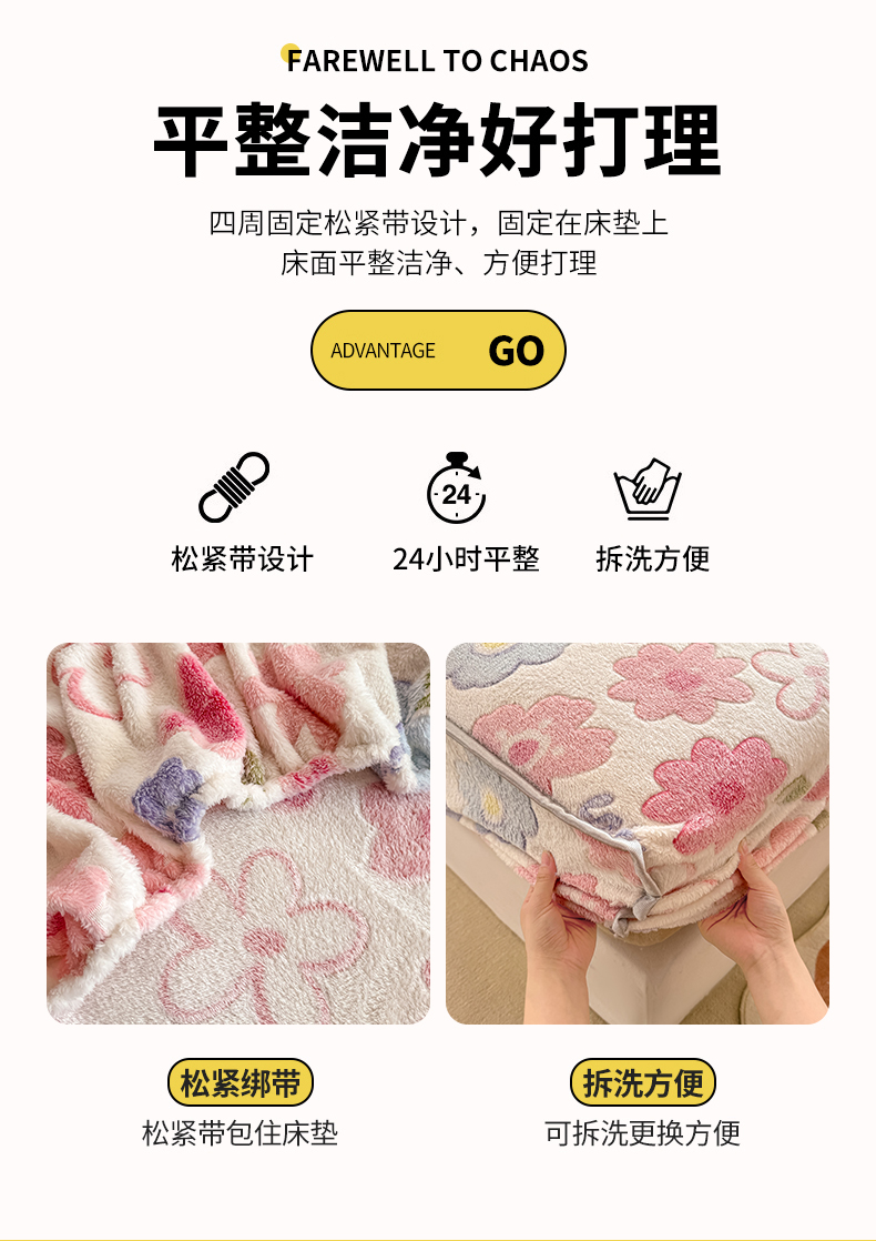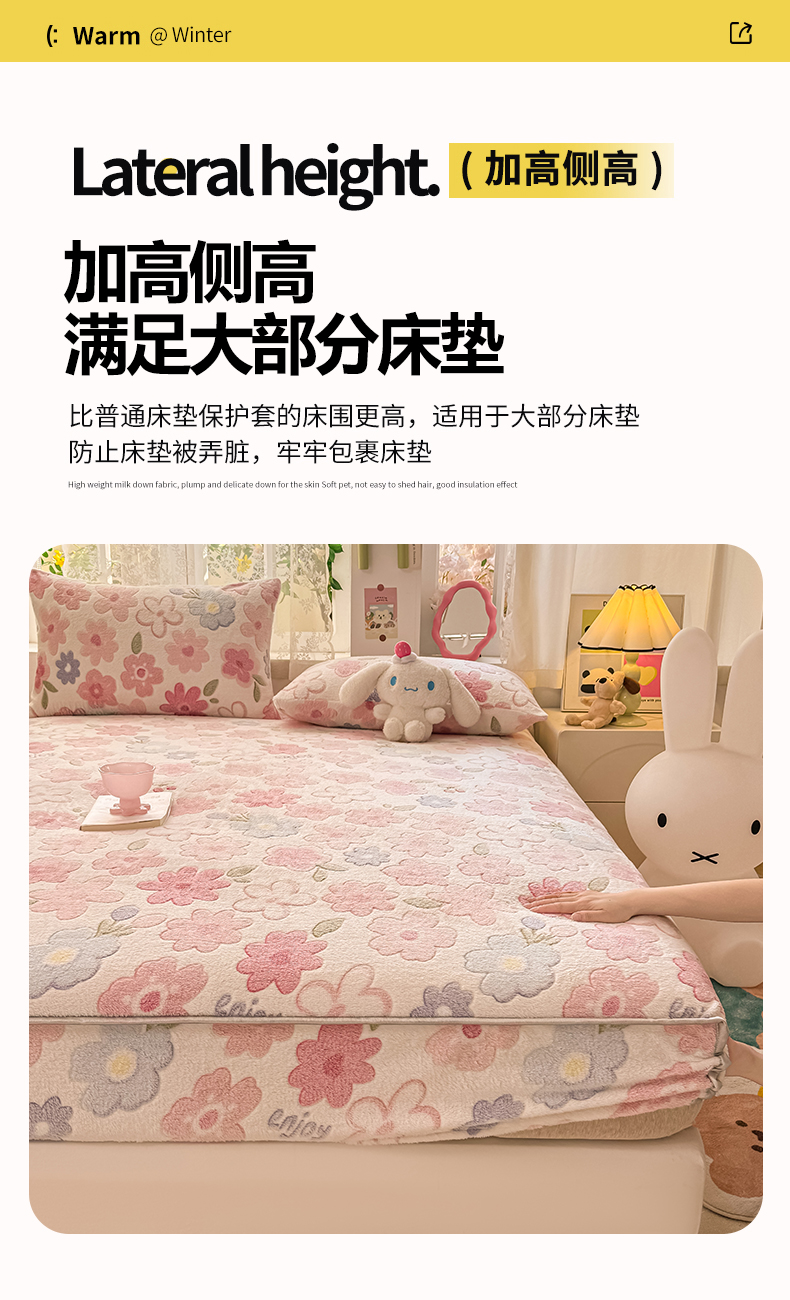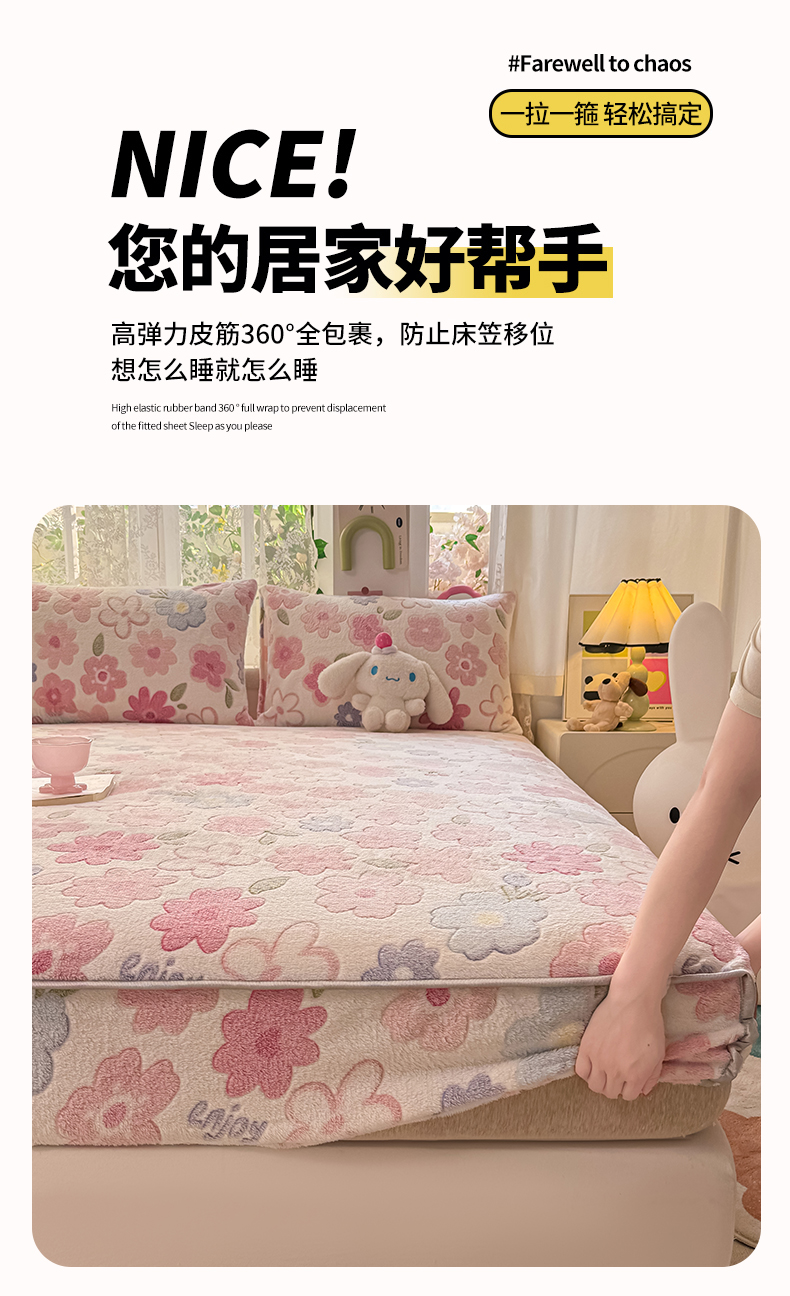 悦织湾家纺 2025新款加厚雪花绒印花床笠保暖牛奶绒床笠跨境专供外贸出口电商直播热销款 雪花绒床笠-毛毛球