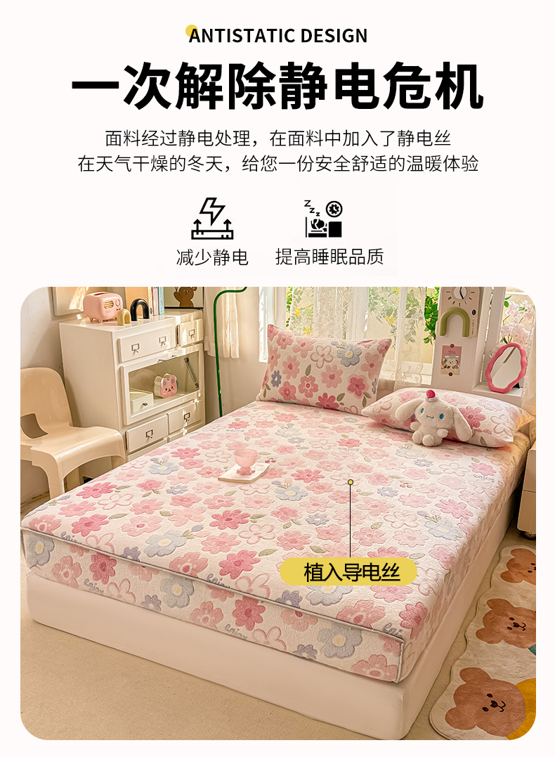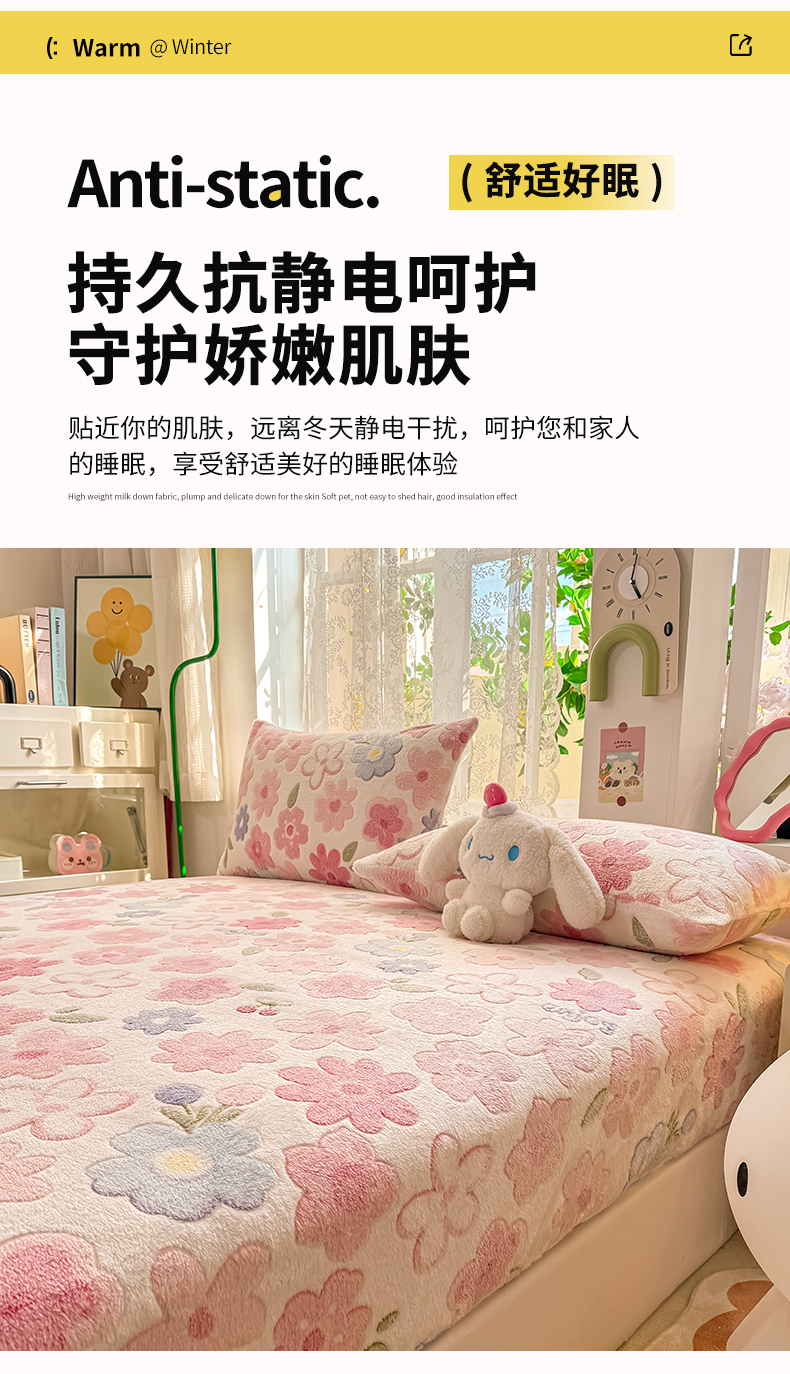 • 91家纺网 家纺一手货源 找家纺 悦织湾家纺 2025新款加厚雪花绒印花床笠保暖牛奶绒床笠跨境专供外贸出口电商直播热销款 雪花绒床笠-毛毛球