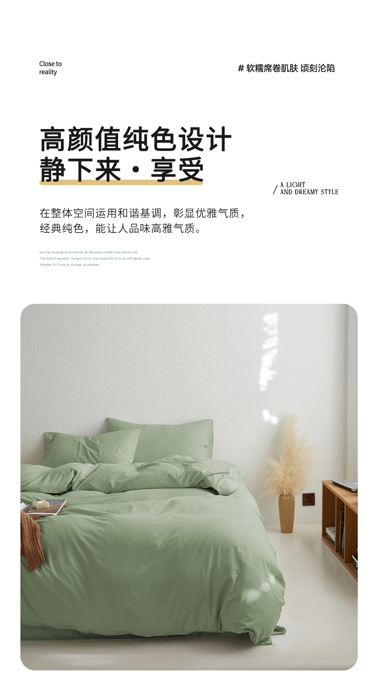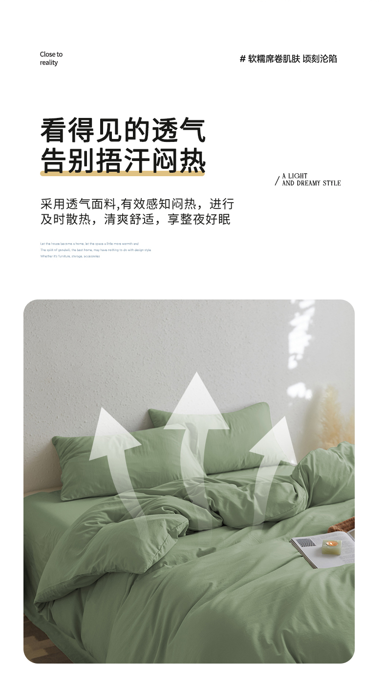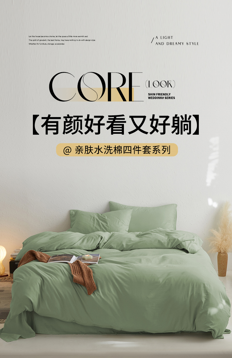 当前位置: 91家纺网 > 商品网购 > 床品套件 > 四件套 > 水洗棉四件套 > 沃朴家居 2024新款亲肤水洗棉四件套豆蔻青(深)
