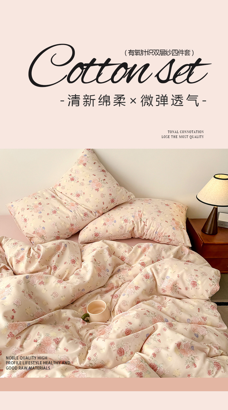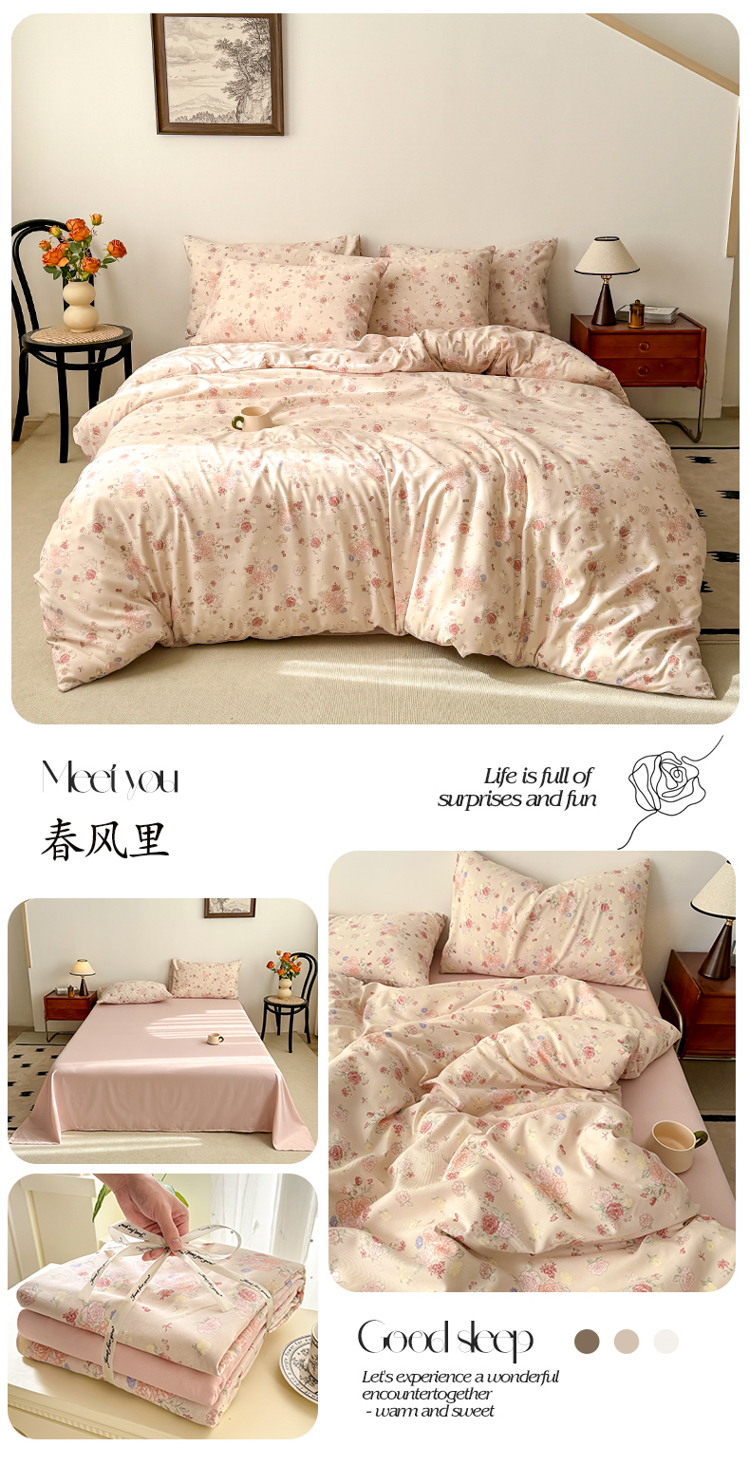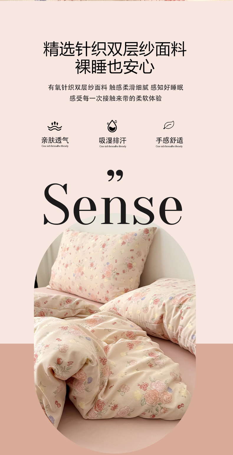 漫仙阁家纺 2025年爆款新品有氧双层纱四件套-碎花 春风里