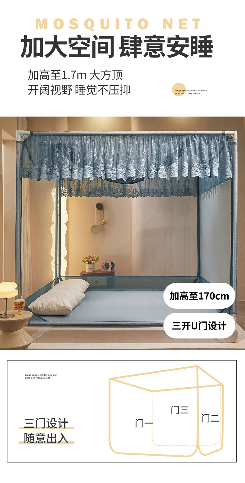 艺利轩蚊帐 2025新款大空间防摔外穿杆坐床蚊帐-繁花 繁花 氧气蓝