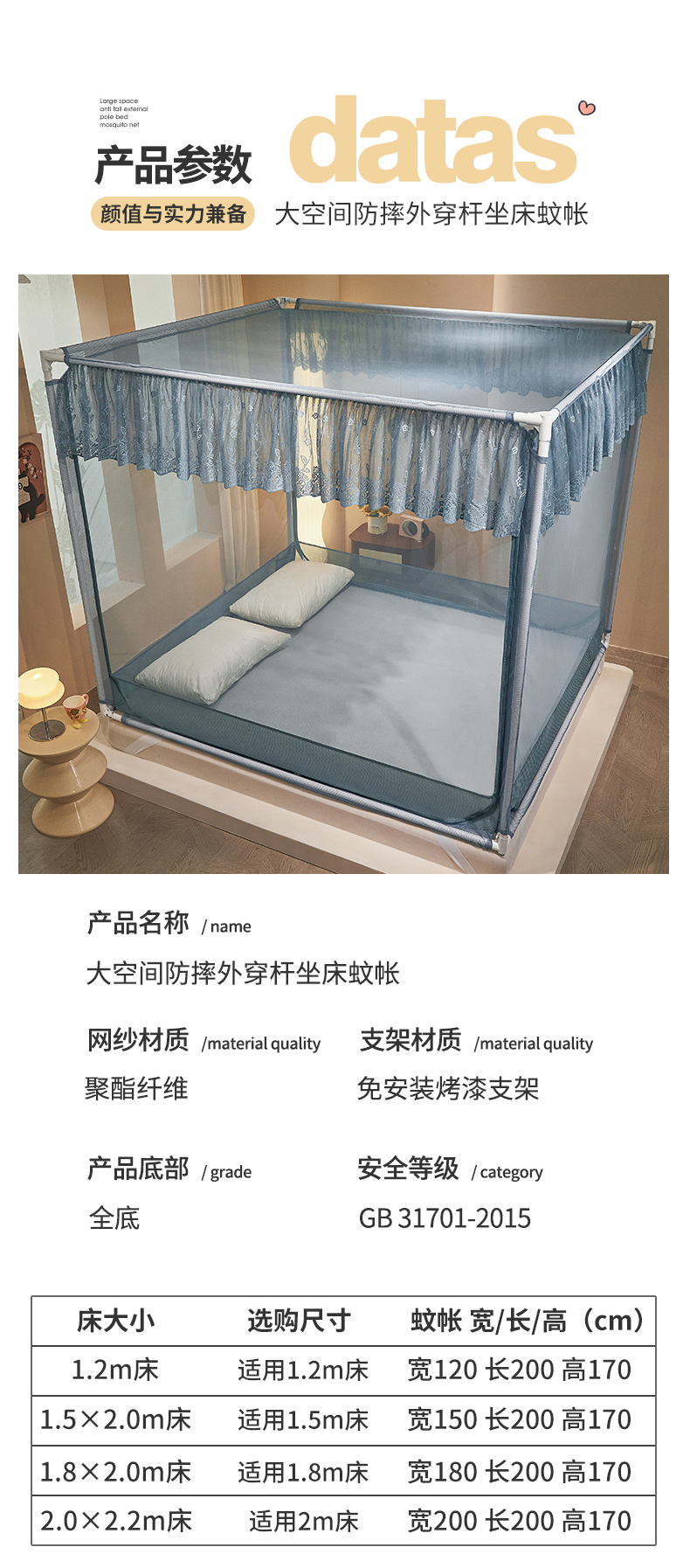 商品名称:艺利轩蚊帐 2025新款大空间防摔外穿杆坐床蚊帐-繁花 繁花 氧气蓝