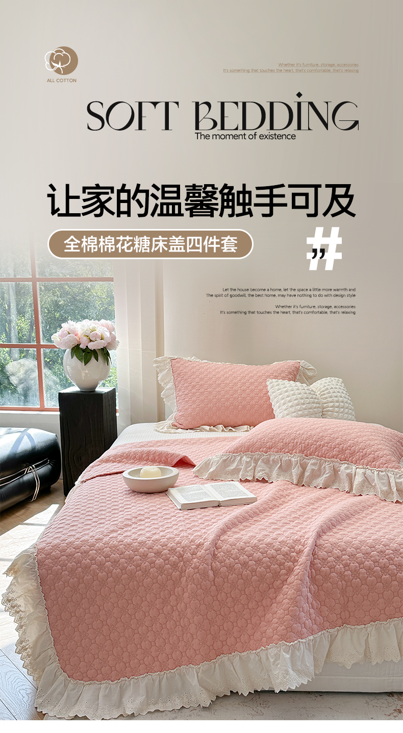 当前位置: 91家纺网 > 商品网购 > 床品套件 > 四件套 > 全棉普通四件套 > 诗黛尔 2025春夏新款全棉棉花糖床盖四件套 棉花糖 粉