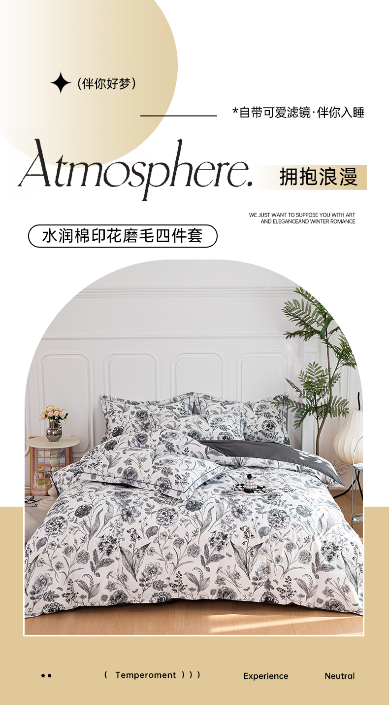 雅慕家居 2025新款A类碎花水润棉磨毛四件套 赫本