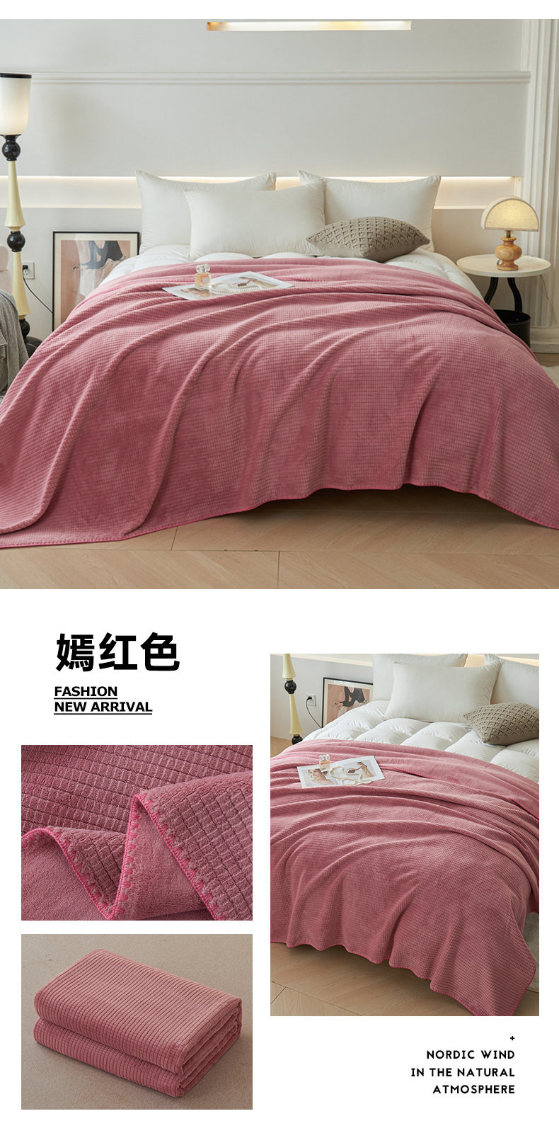 商品名称:馨米莱家纺 2025新款AB版牛奶绒提花纯色多功能盖毯毛毯 嫣红色
