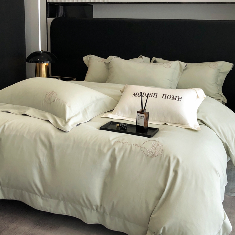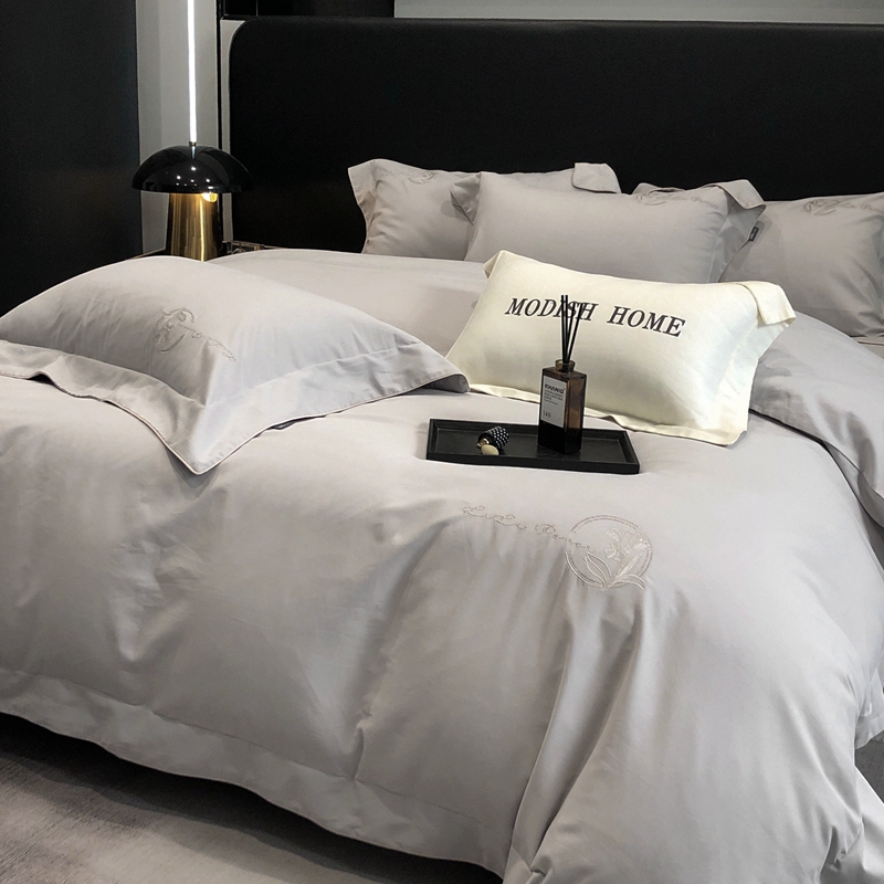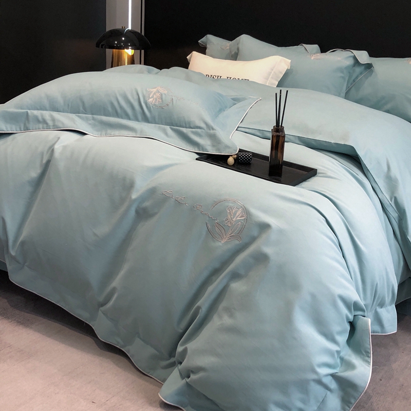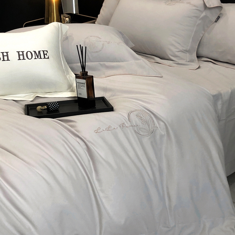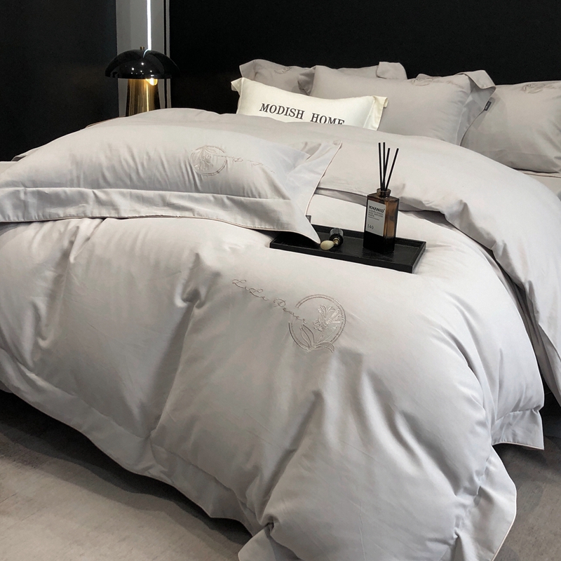 总玖玖爱家纺 纯棉100支贡缎长绒棉刺绣被套三件套四件套加大四件套,白色,高级灰,卡其,蓝灰,绿色,浅桔,深蓝,紫豆沙