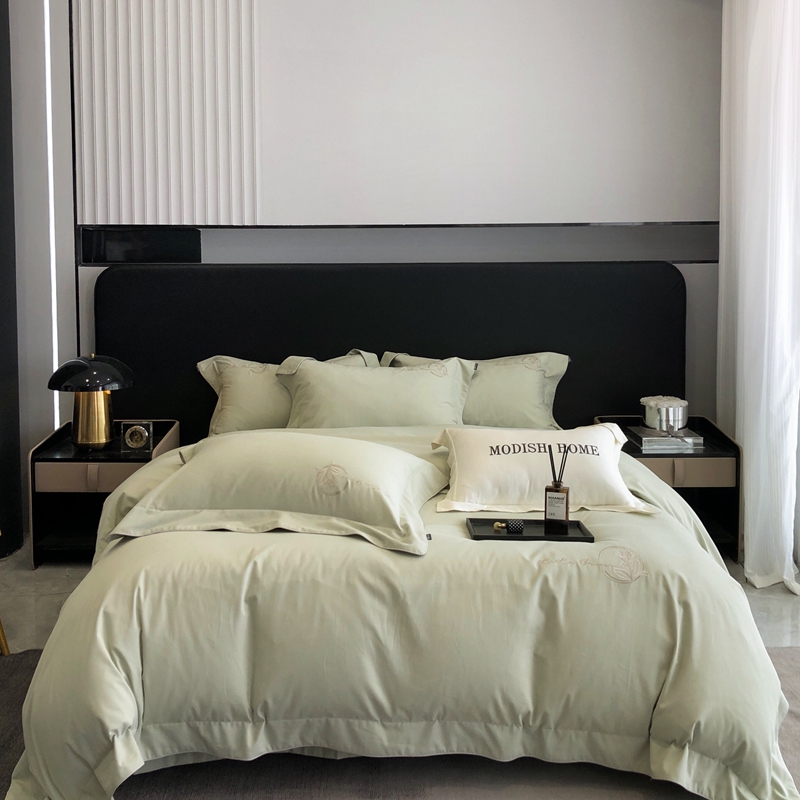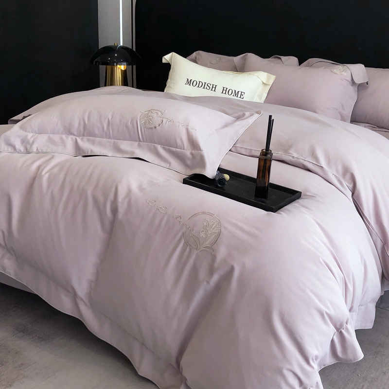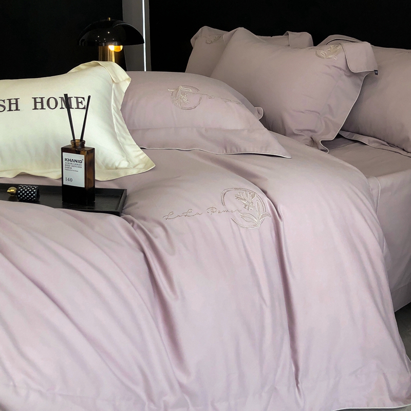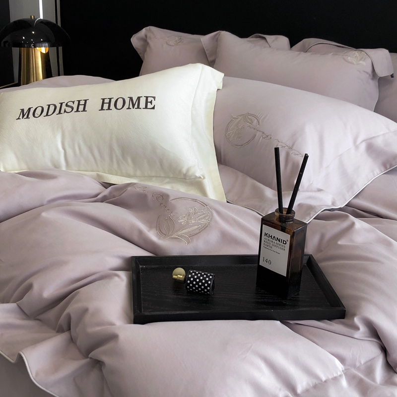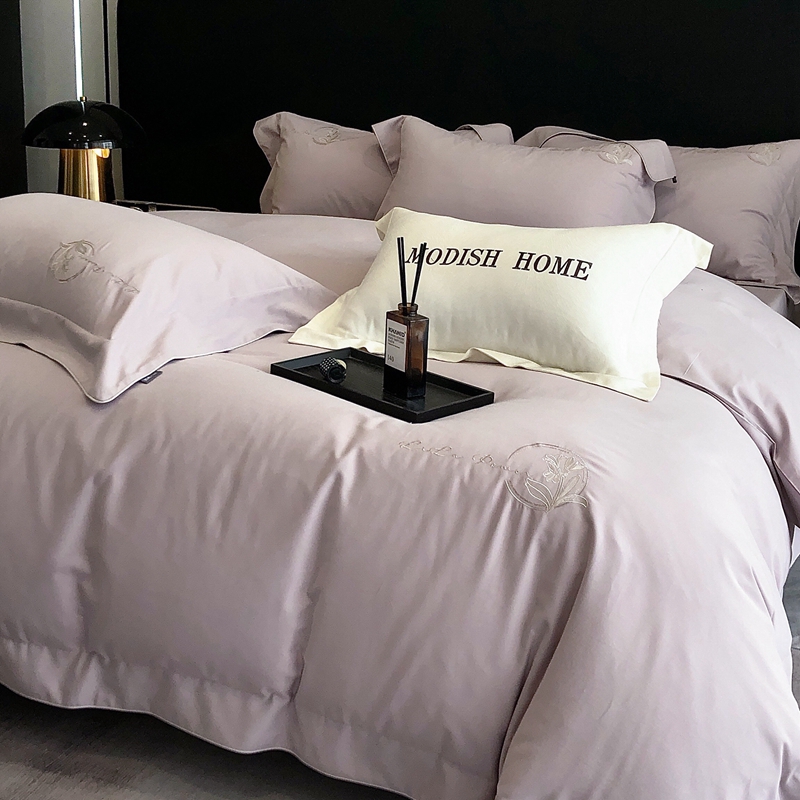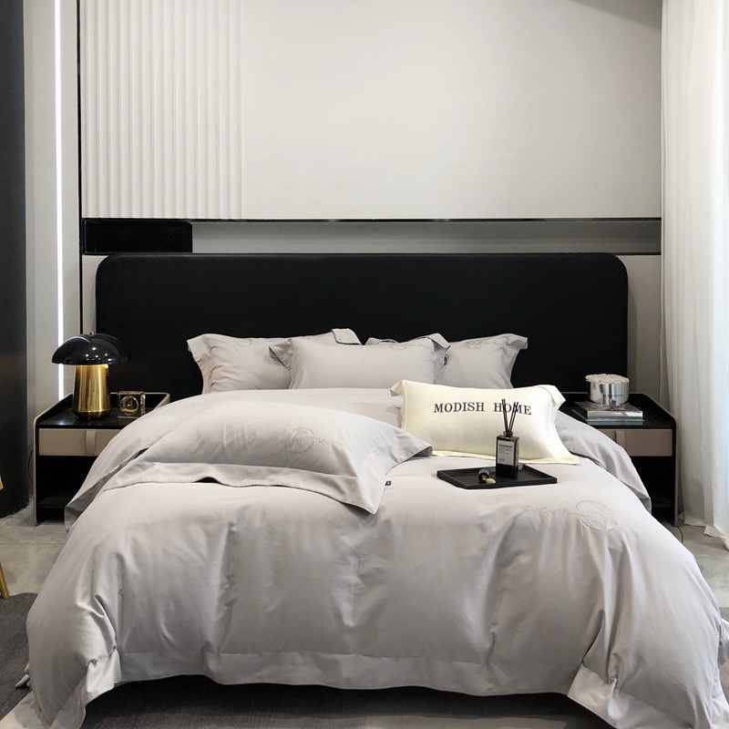 总玖玖爱家纺 纯棉100支贡缎长绒棉刺绣被套三件套四件套加大四件套,白色,高级灰,卡其,蓝灰,绿色,浅桔,深蓝,紫豆沙