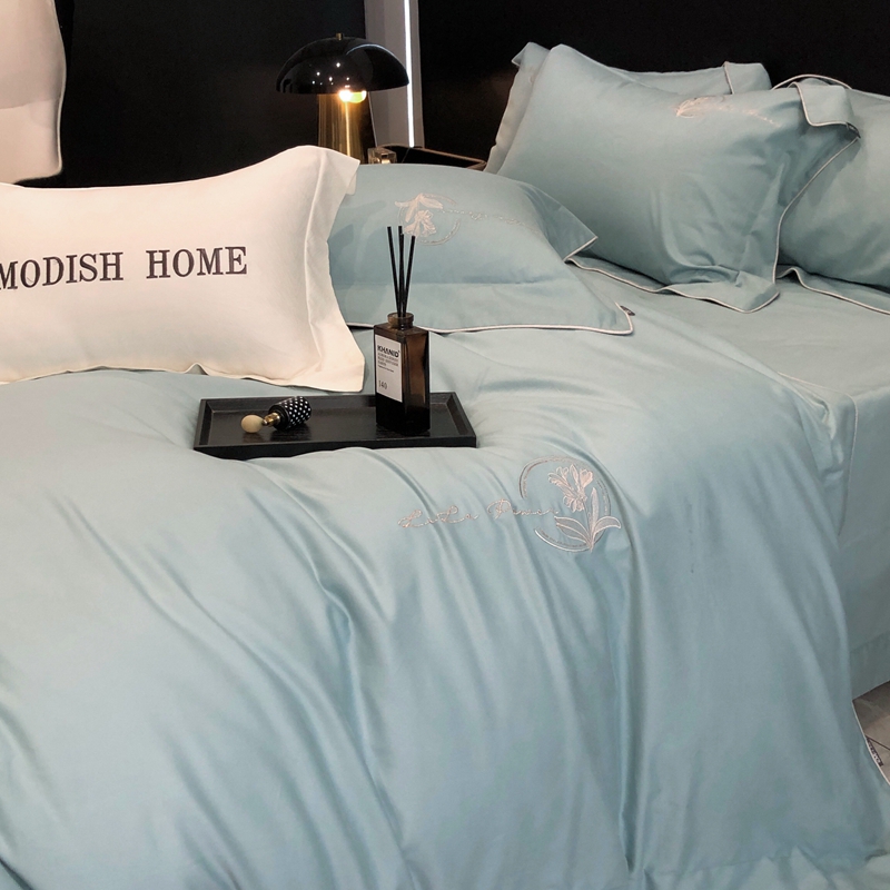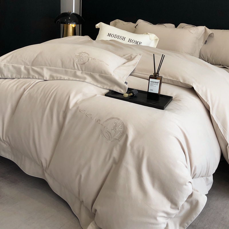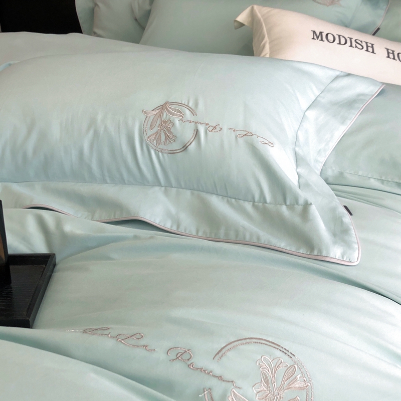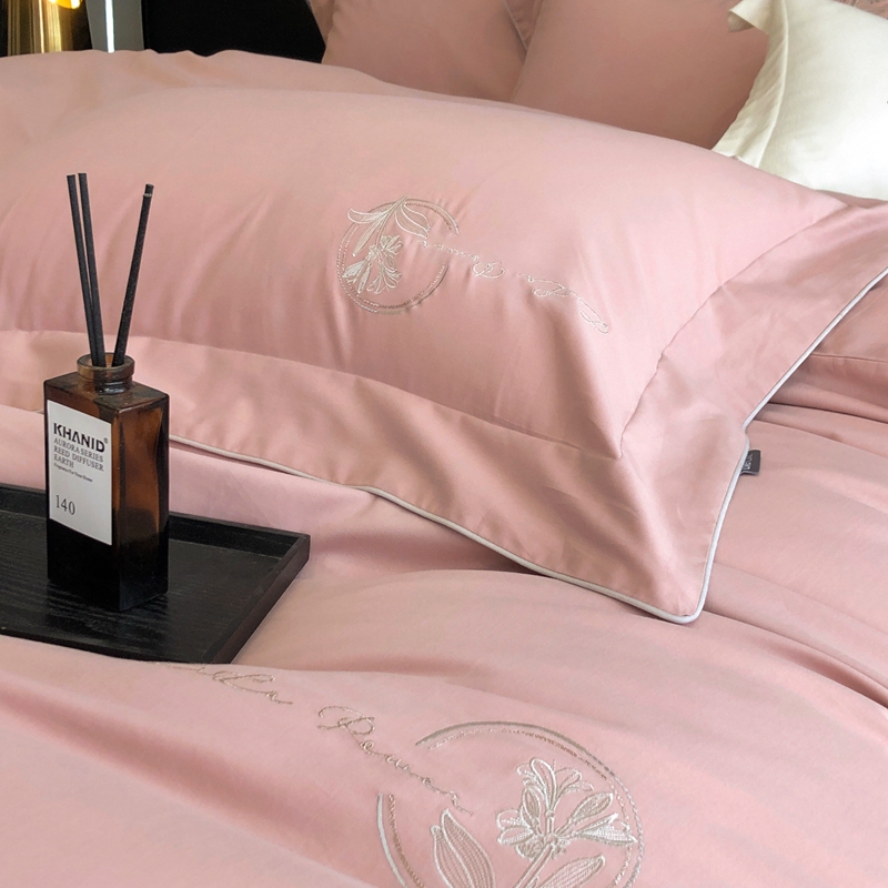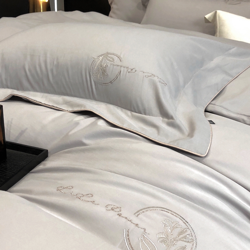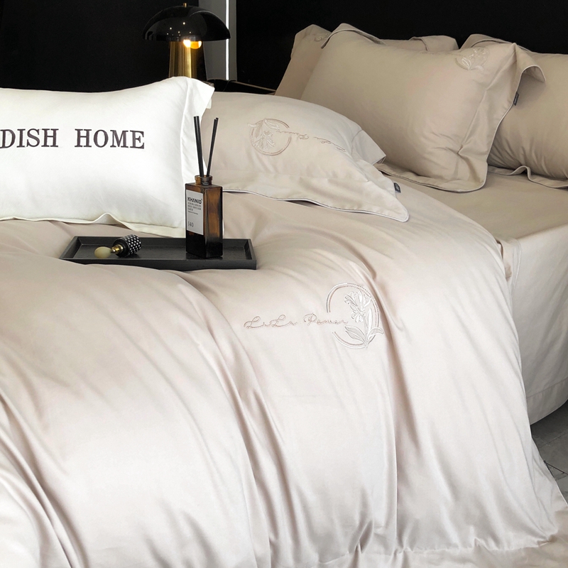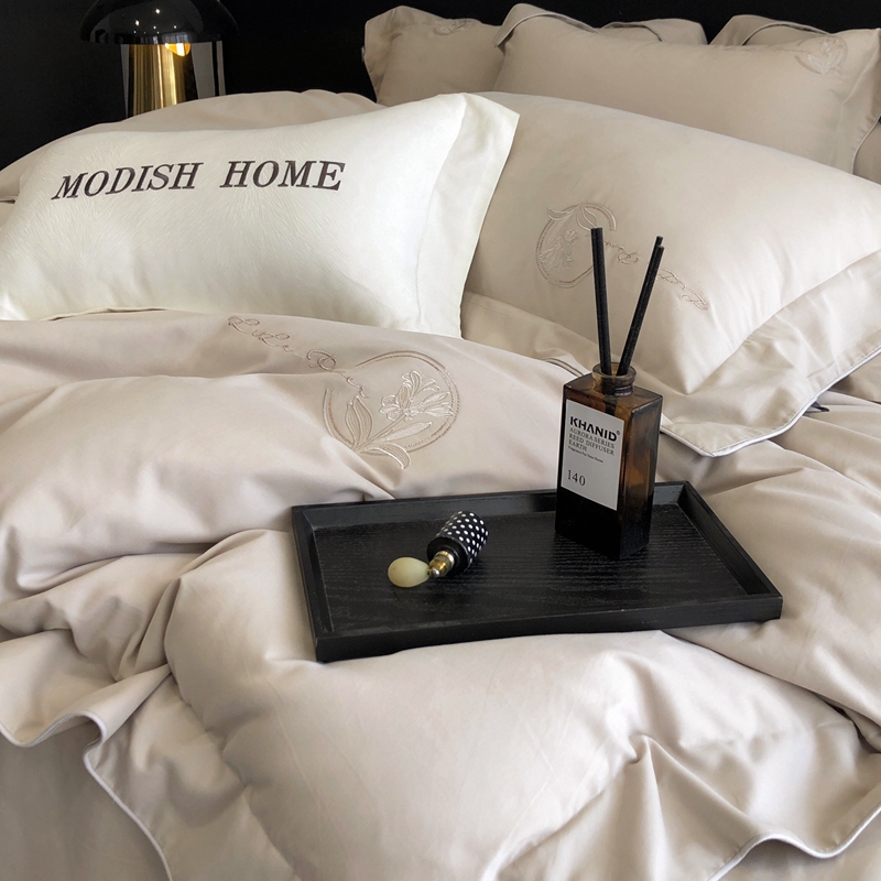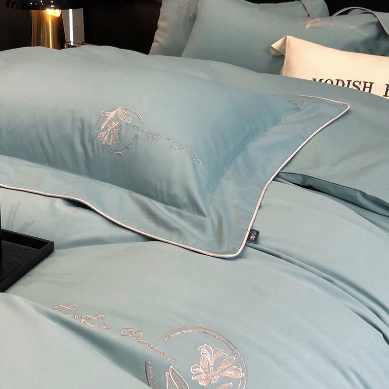 (总)玖玖爱家纺 2023新款120支贡缎长绒棉刺绣梦柔系列四件套,梦柔-香槟金,梦柔-香橙桔,梦柔-高级灰,梦柔-水蓝,梦柔-芙蓉玉