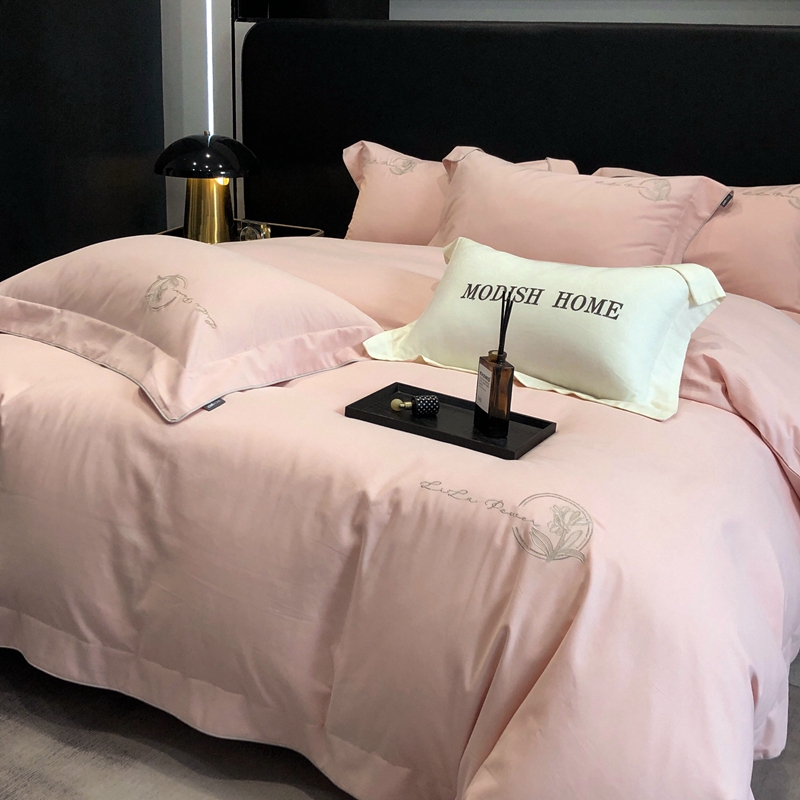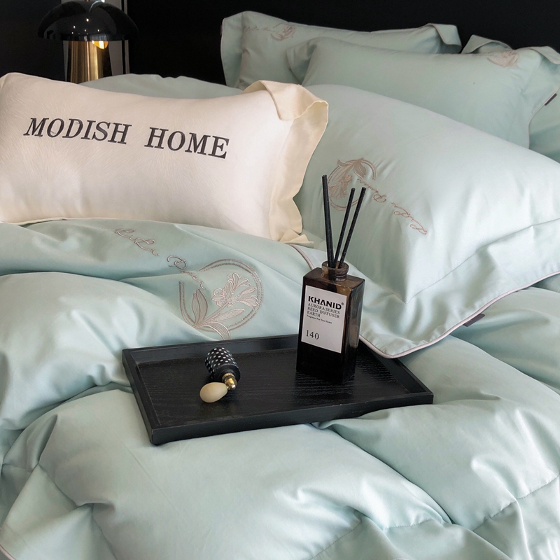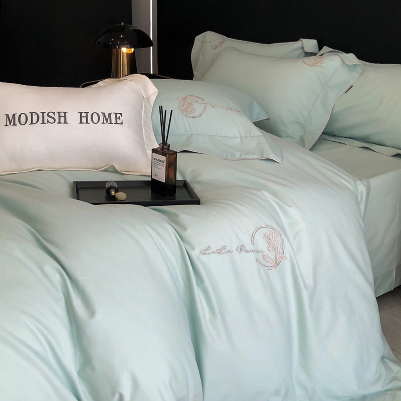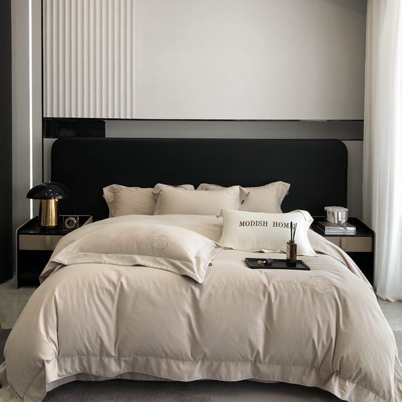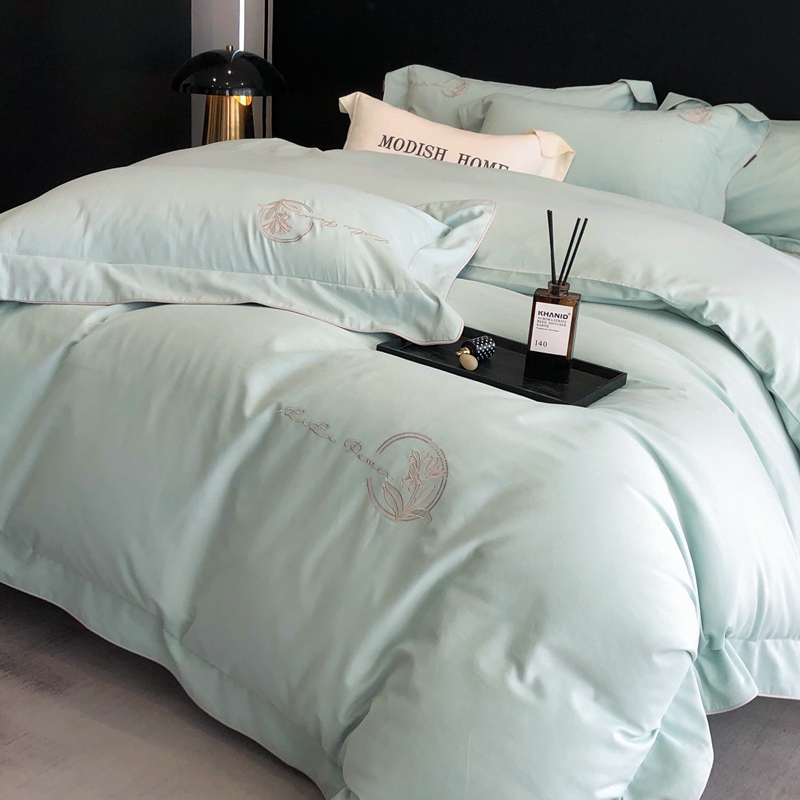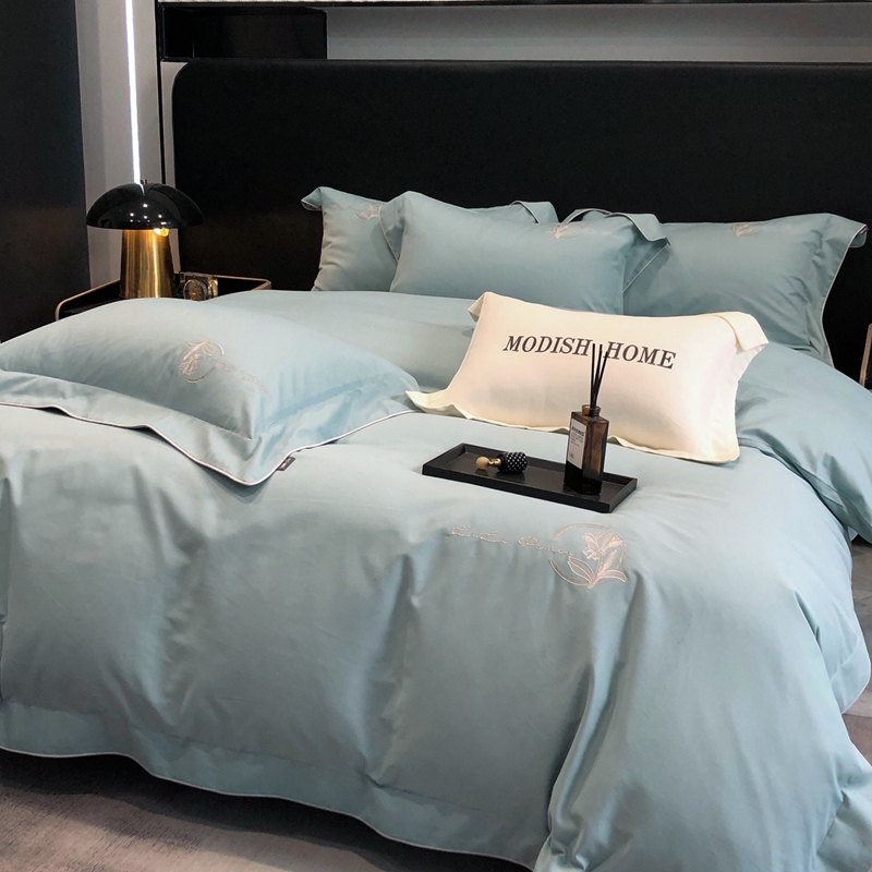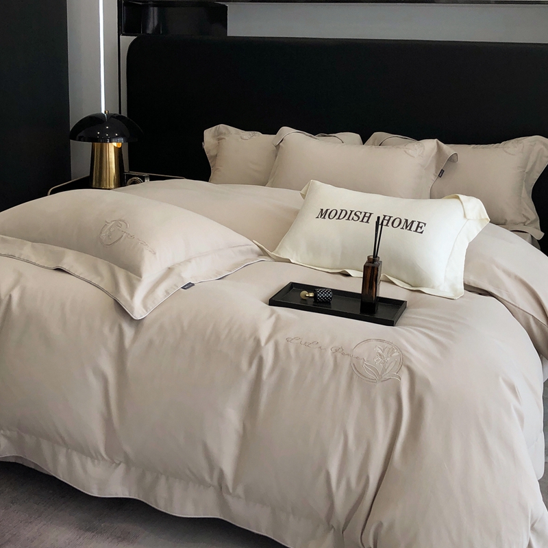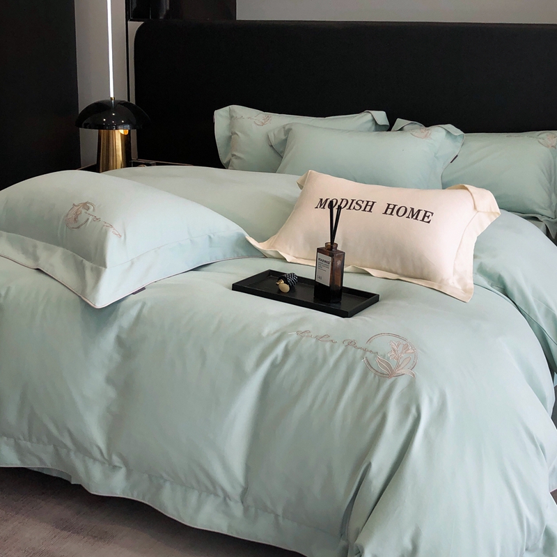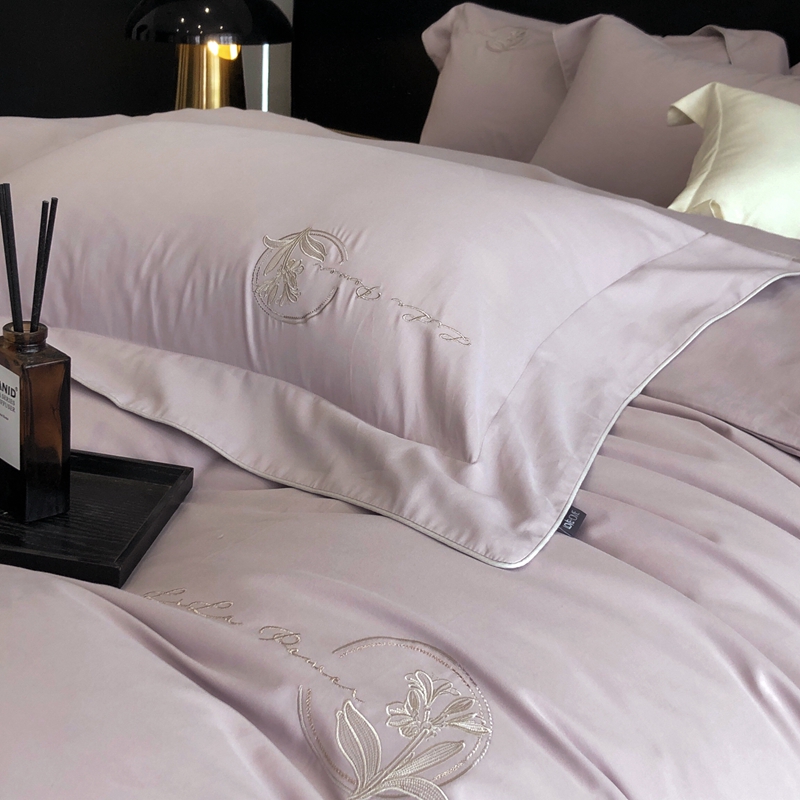 (总)玖玖爱家纺 2023新款120支贡缎长绒棉刺绣梦柔系列四件套,梦柔-香槟金,梦柔-香橙桔,梦柔-高级灰,梦柔-水蓝,梦柔-芙蓉玉