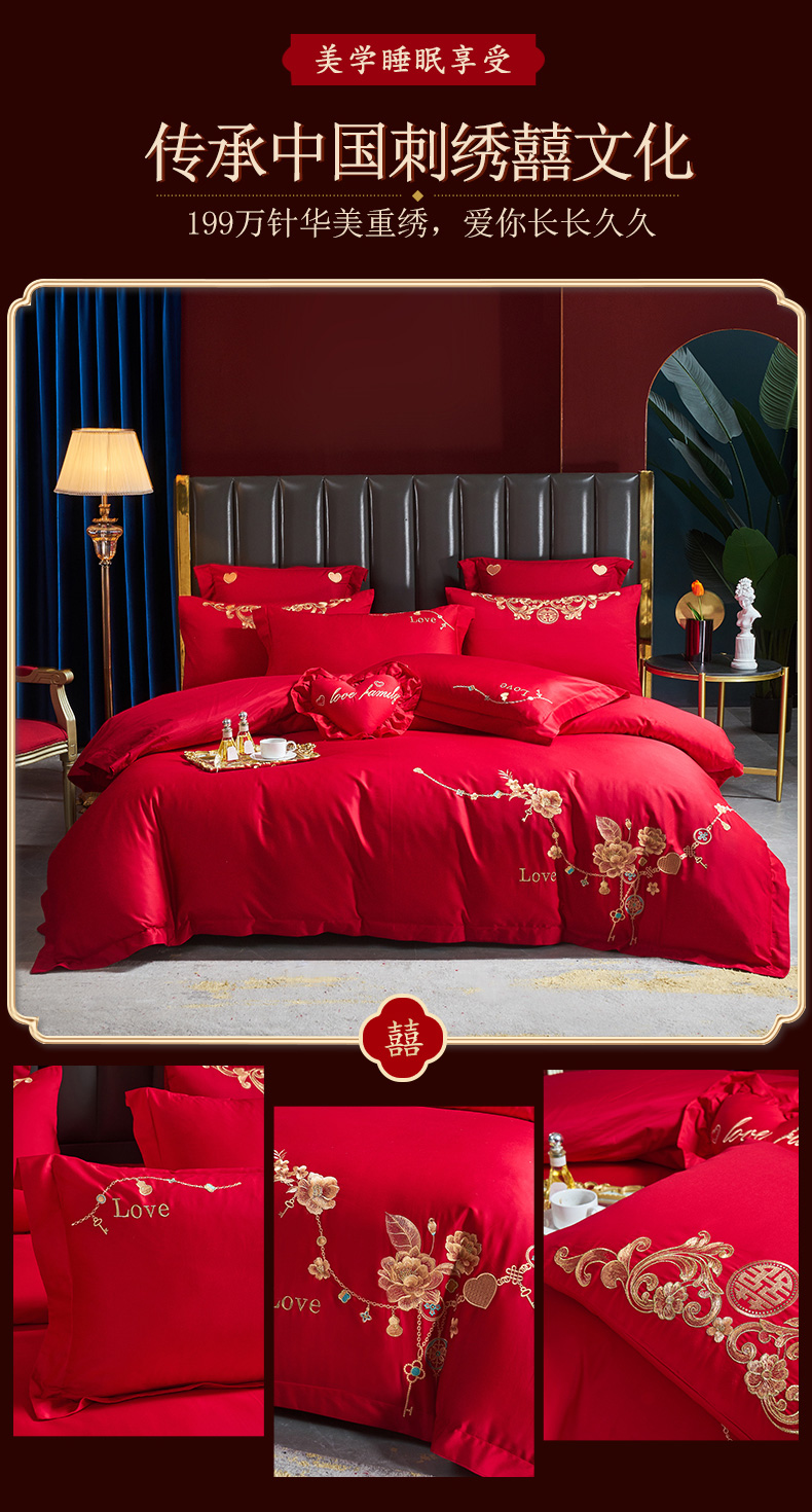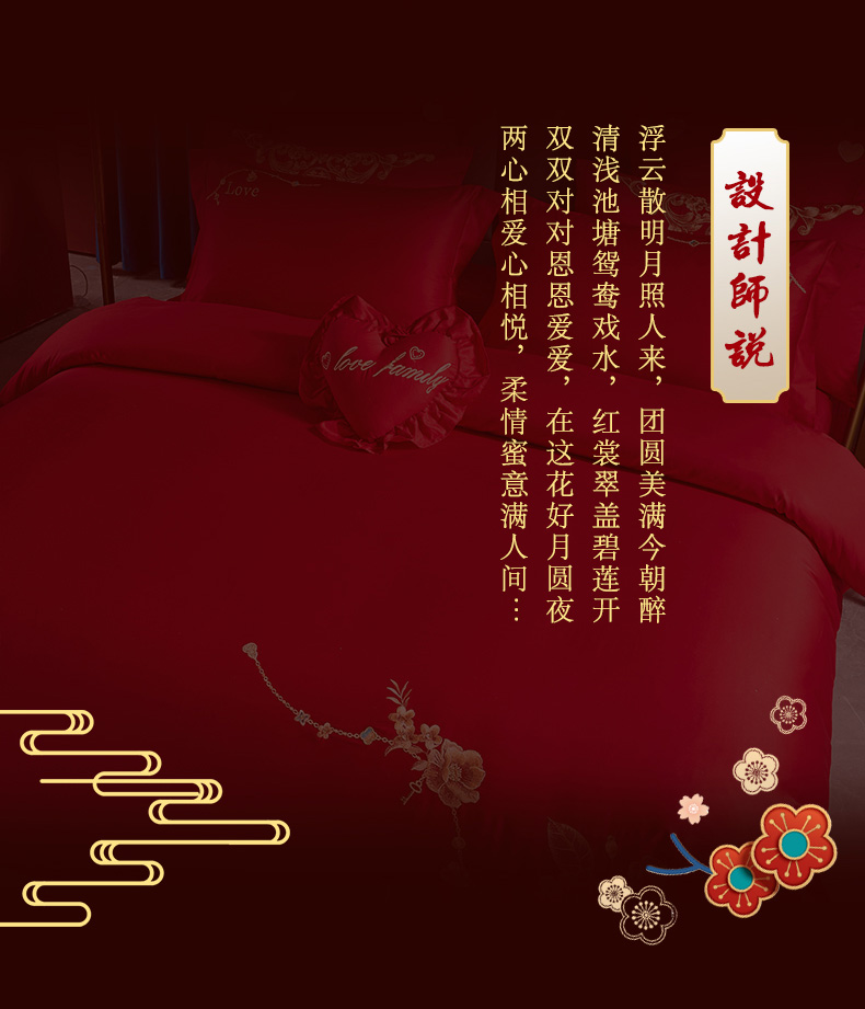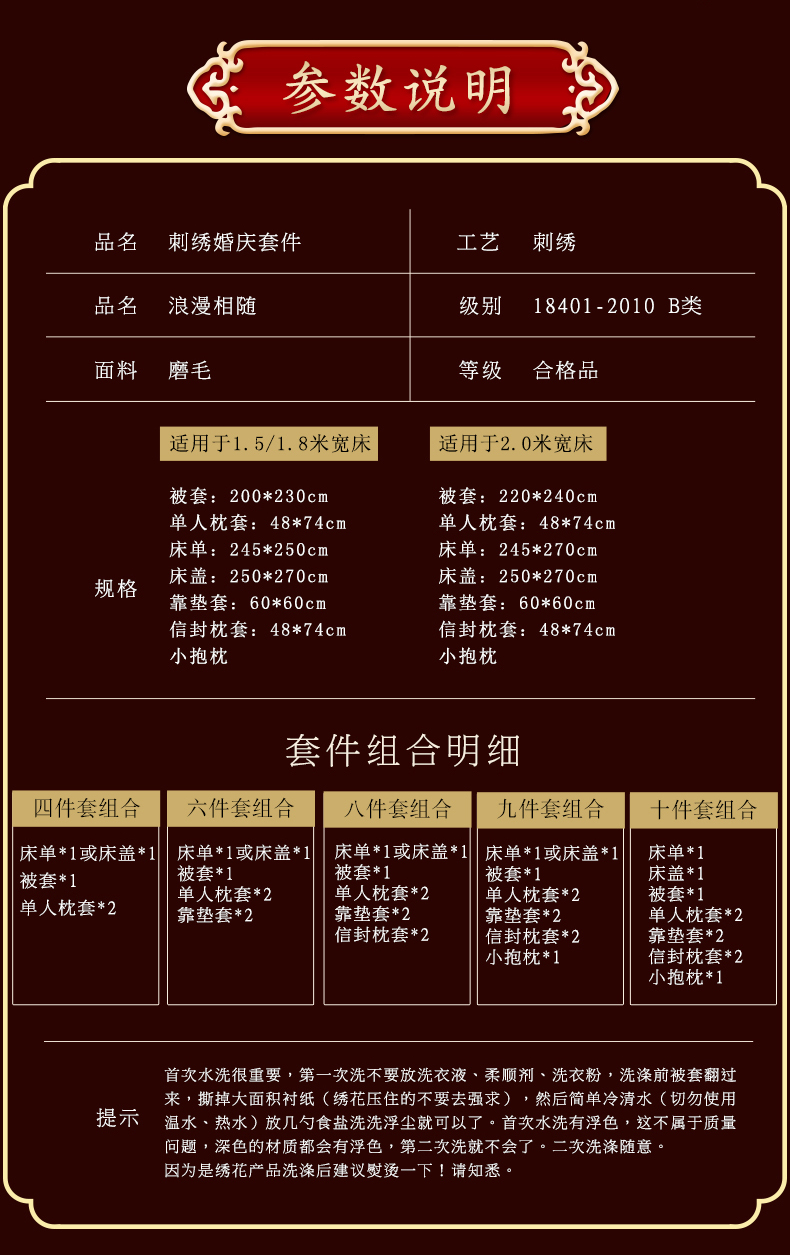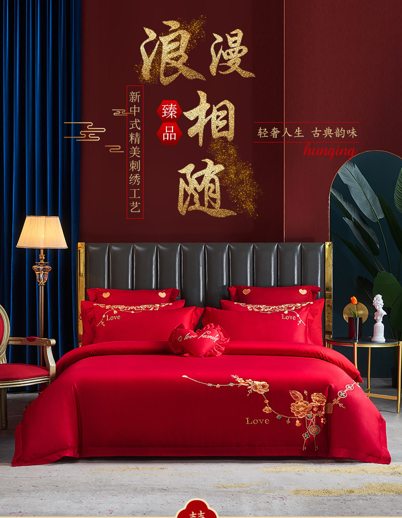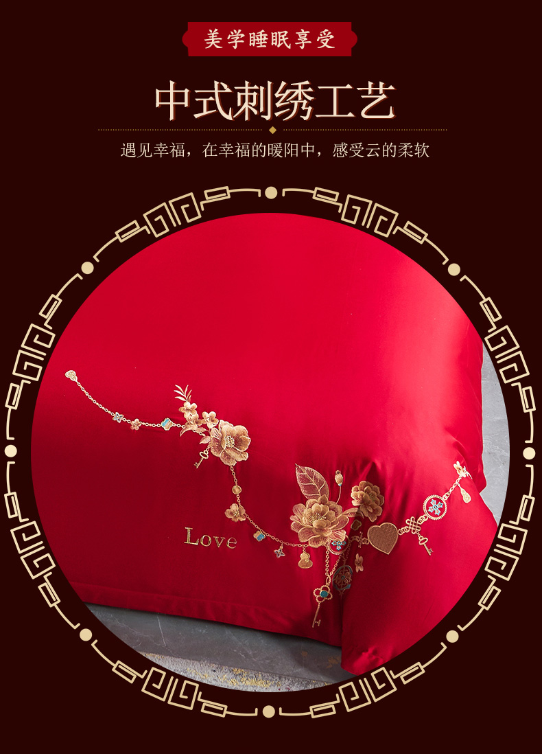 当前位置: 91家纺网 > 商品网购 > 床品套件 > 四件套 > 婚庆四件套 > 东方合美(原:皇家传奇) 2023新款100磨毛婚庆多件套系列 浪漫相随