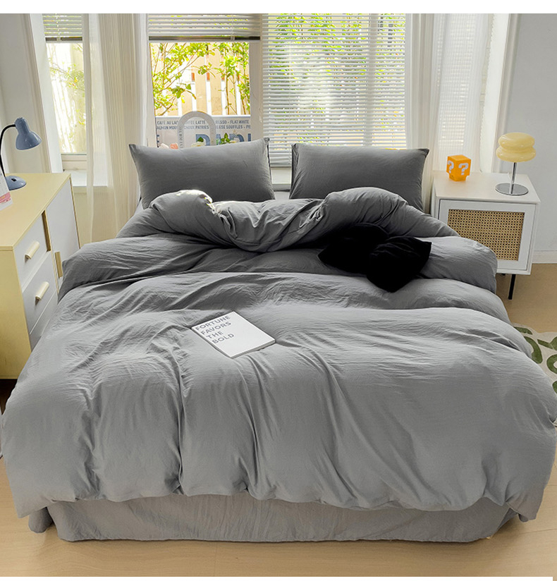 当前位置: 91家纺网 > 商品网购 > 床品套件 > 四件套 > 水洗棉四件套 > 森璐 2025新款水洗棉双拼四件套宿舍三件套床单被套枕套纯色-浅灰色