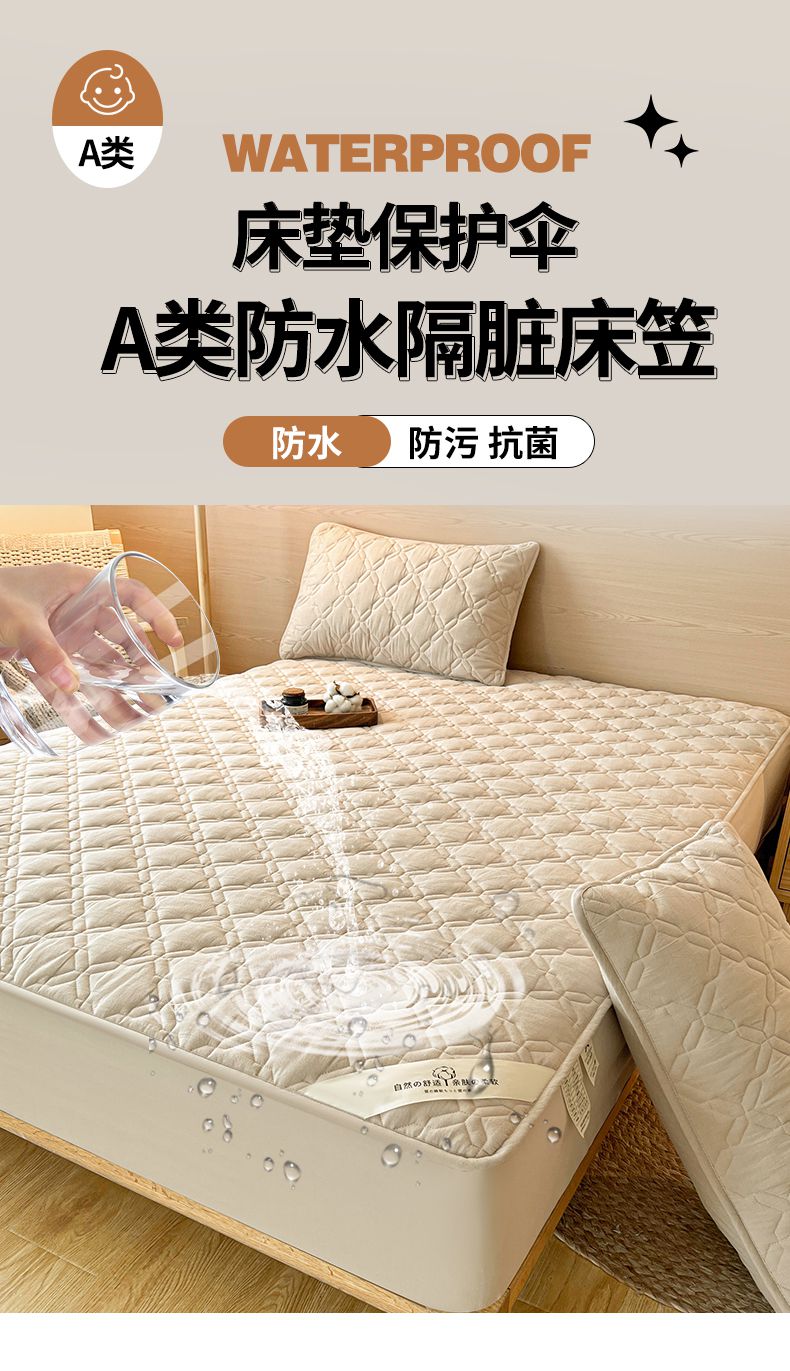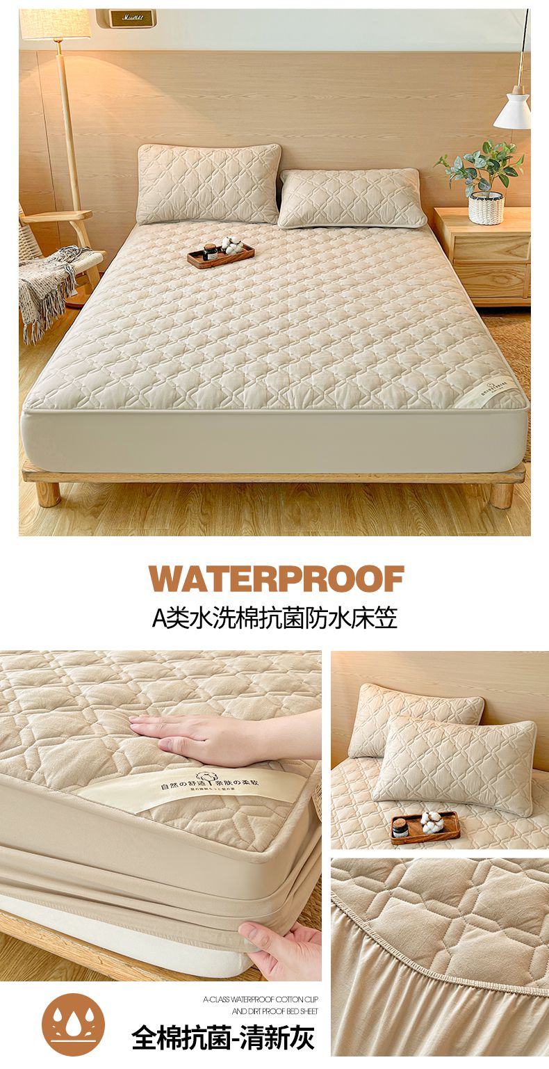 • 91家纺网 家纺一手货源 找家纺 3C 2024新款A类全棉抗菌防水床笠 全棉防水-清新灰