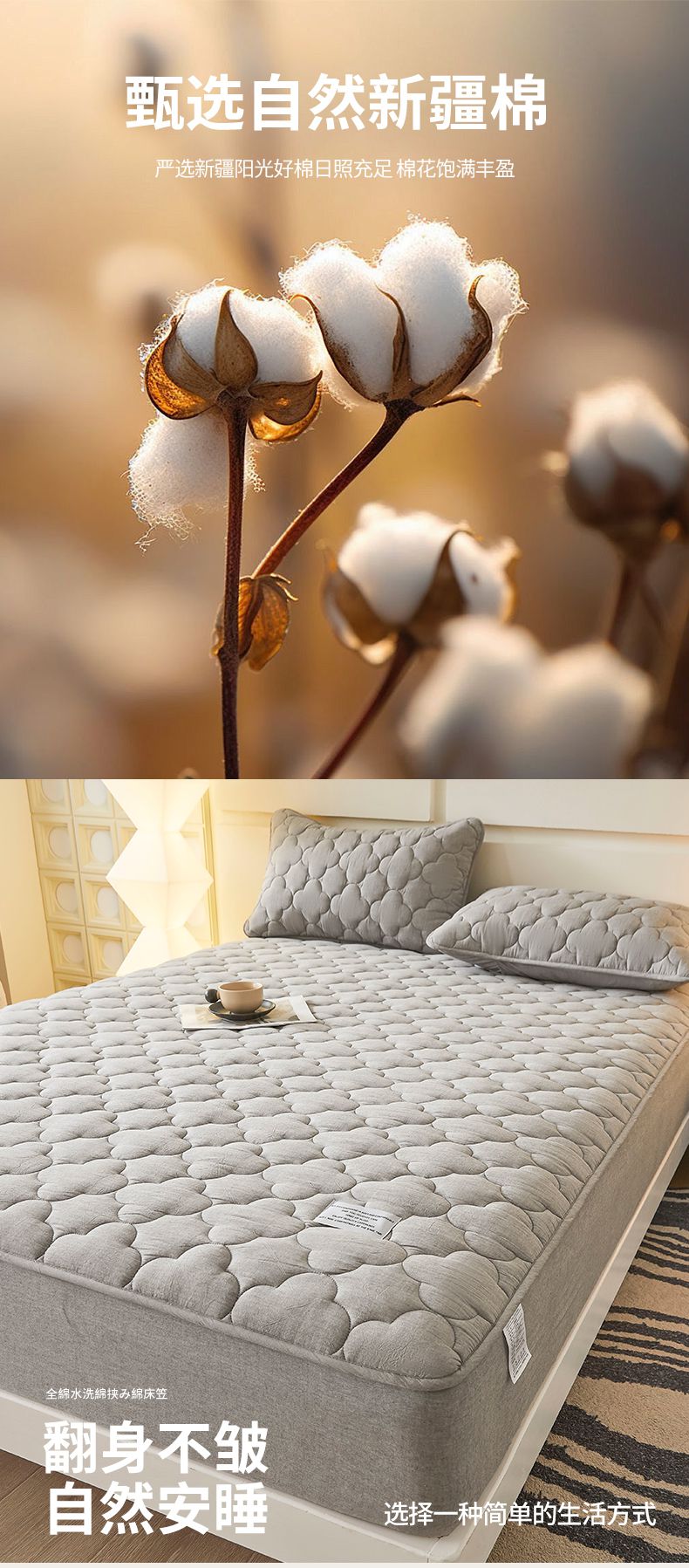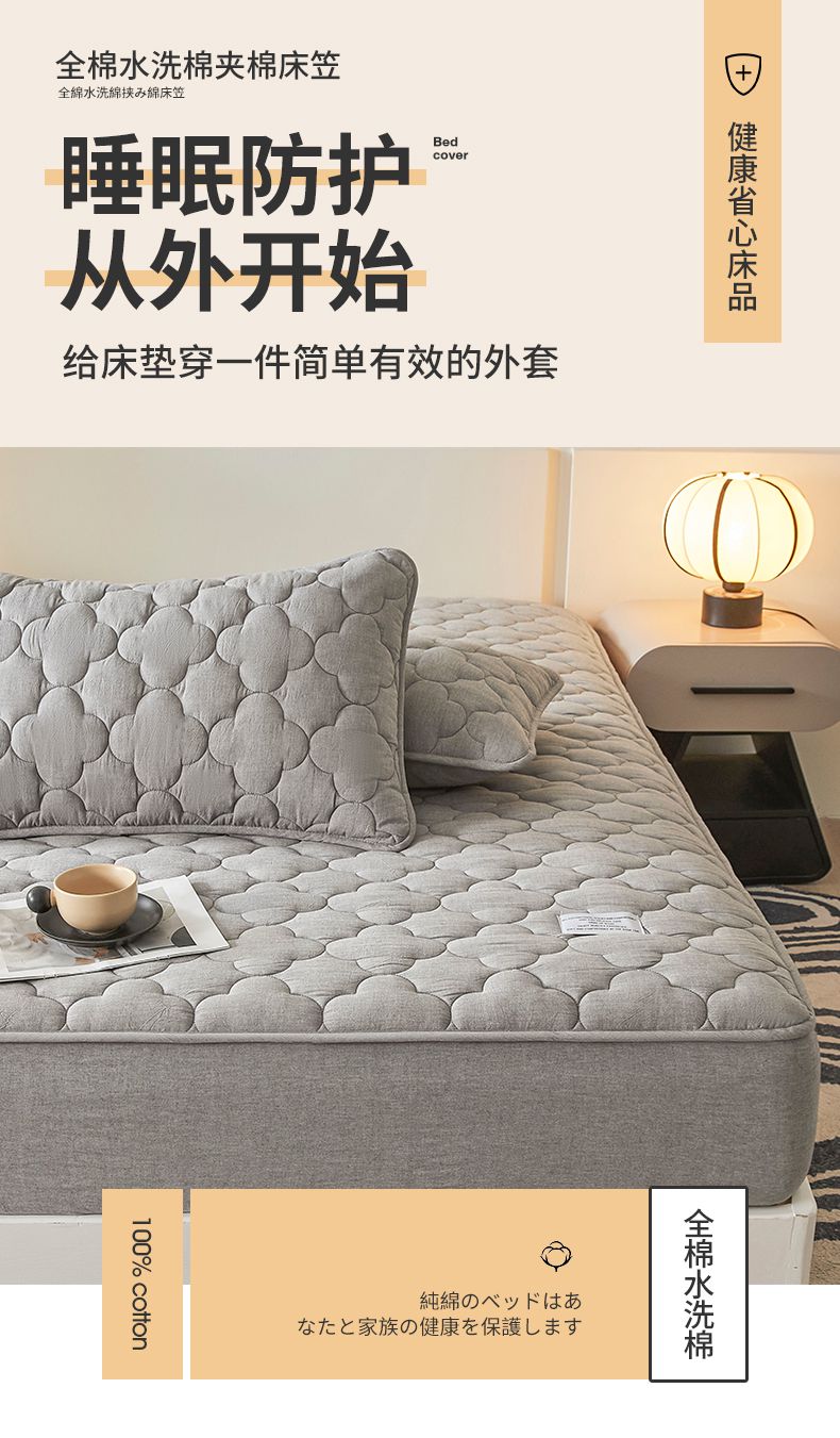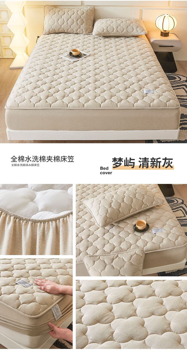 商品名称:3C 2025新款全棉水洗棉夹棉床笠-梦屿系列 梦屿 冰山灰