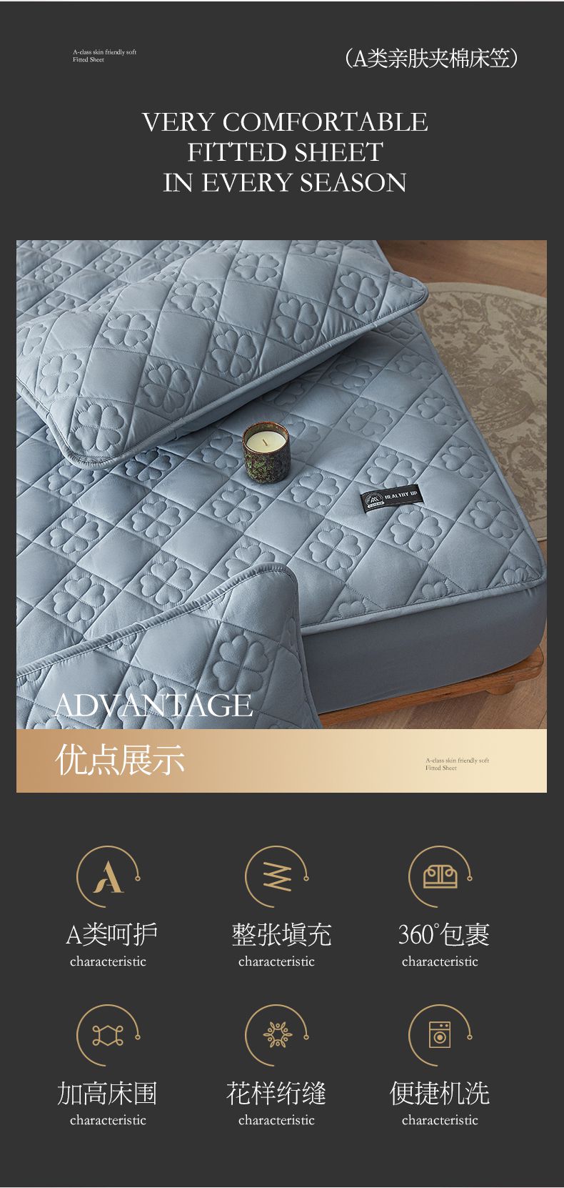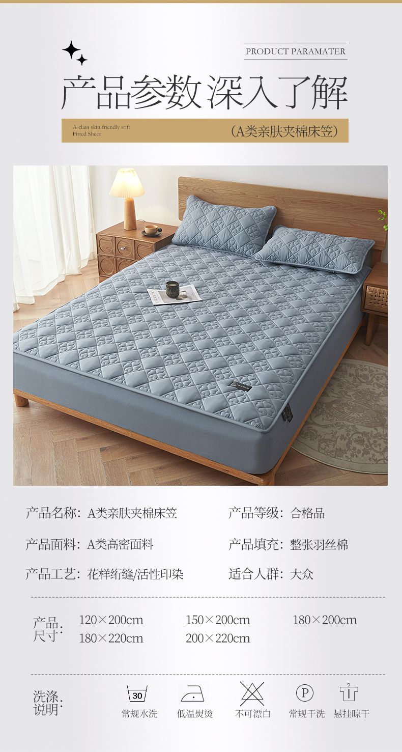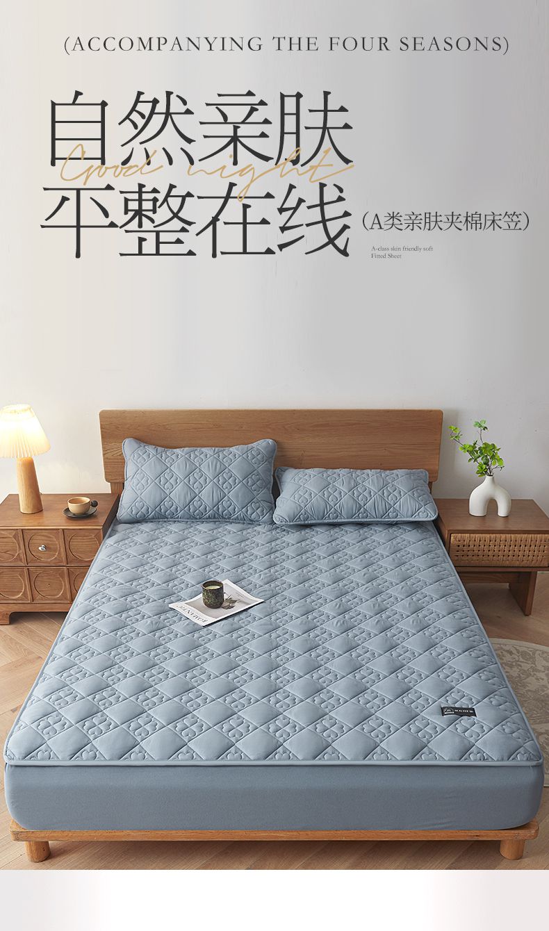 • 91家纺网 家纺一手货源 找家纺 3C 2025新款A类亲肤夹棉床笠-花叶 花叶 海洋蓝